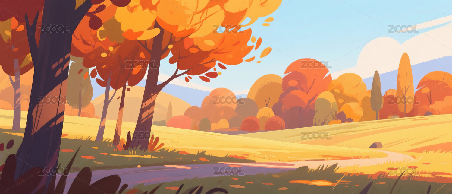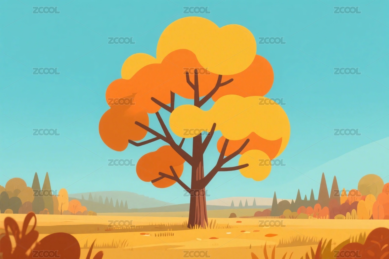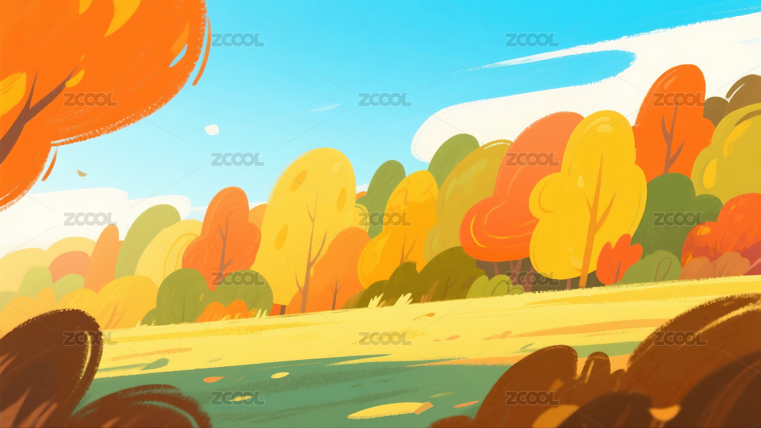 秋天秋季立秋秋分自然户外风景卡通漫画插画