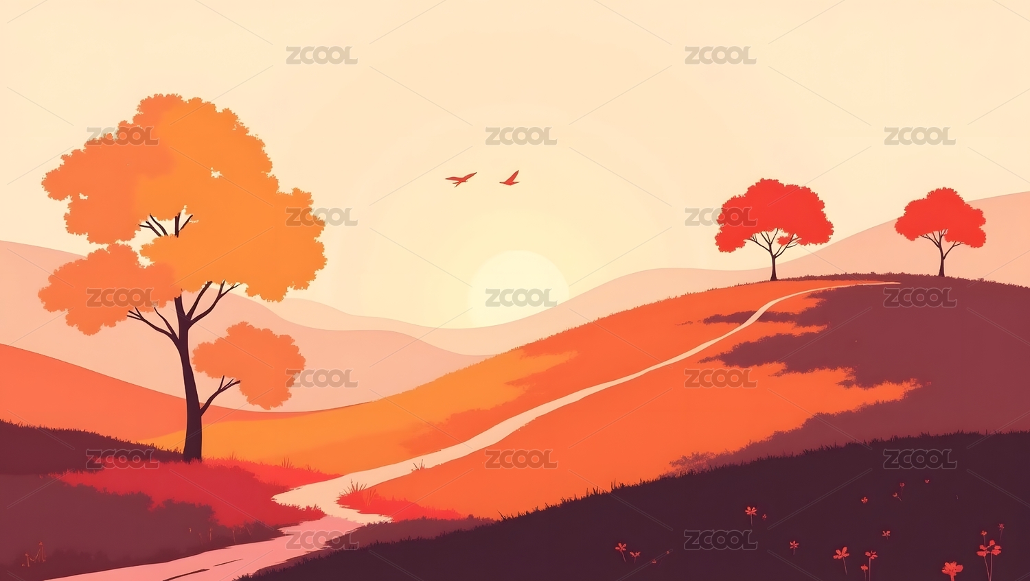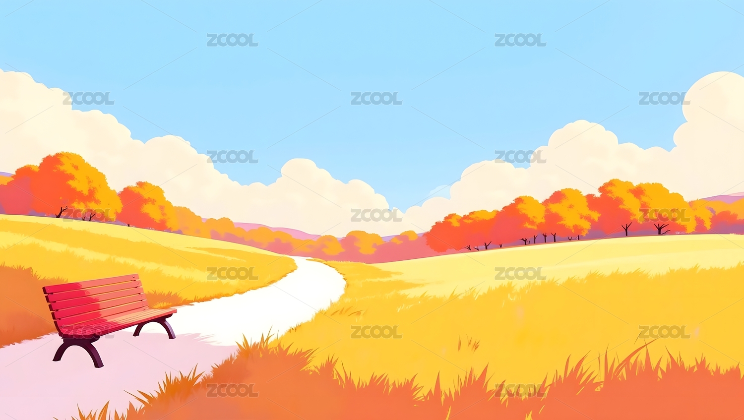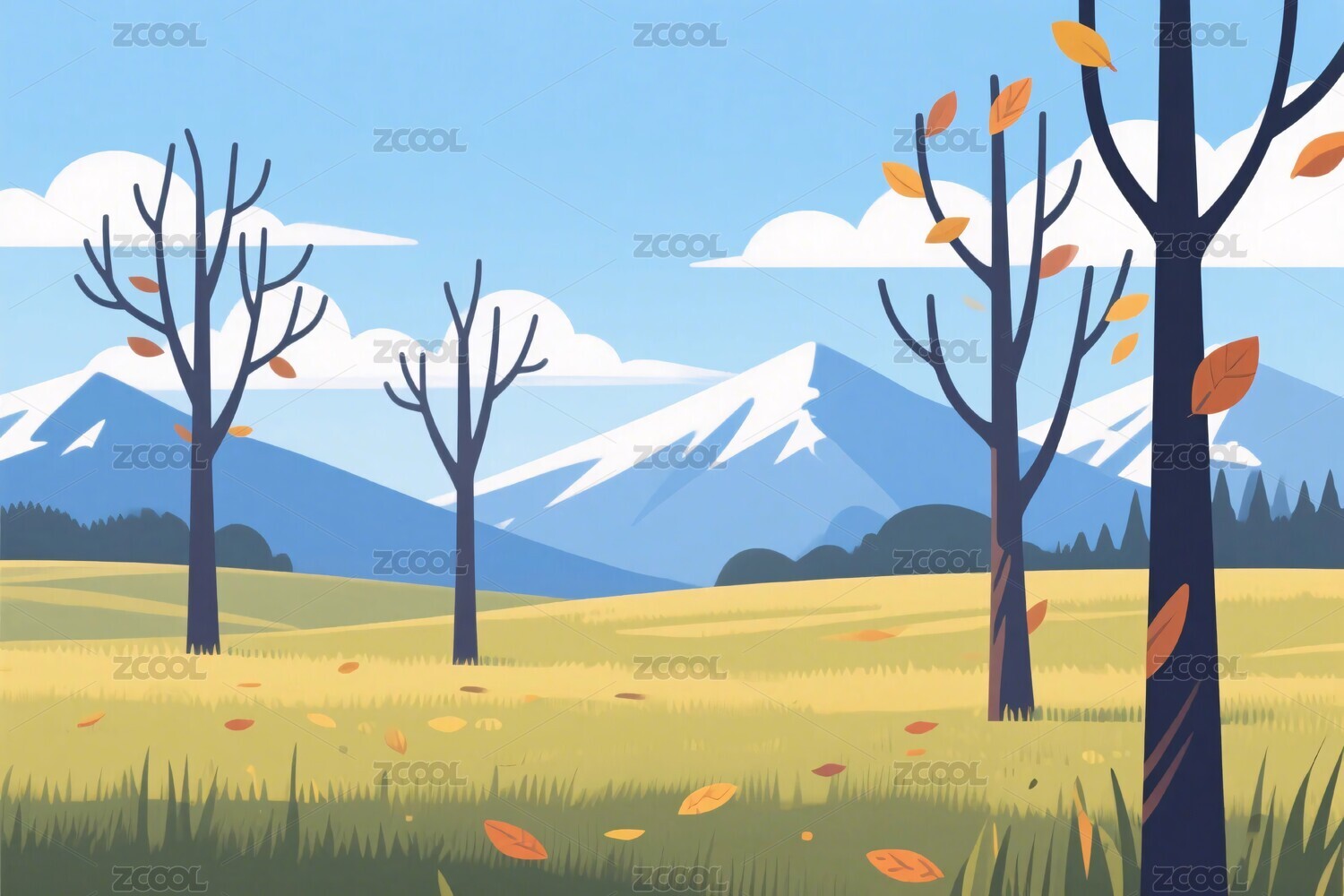 秋天秋季立秋秋分自然户外风景卡通漫画插画