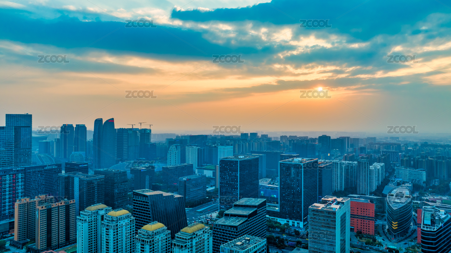 中国四川省成都市高新区天府软件园周边傍晚时刻