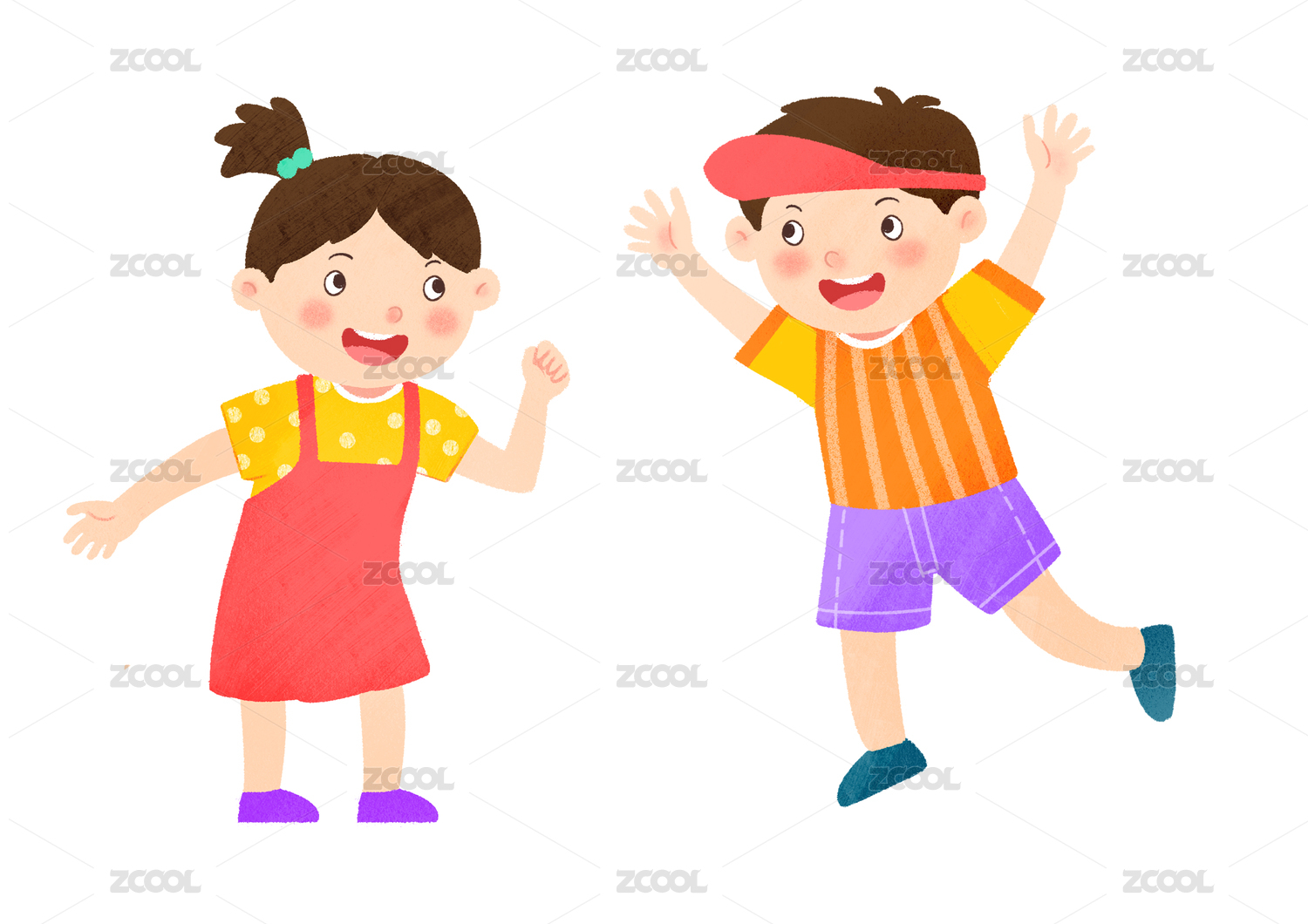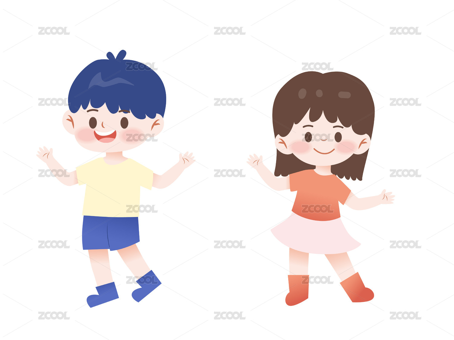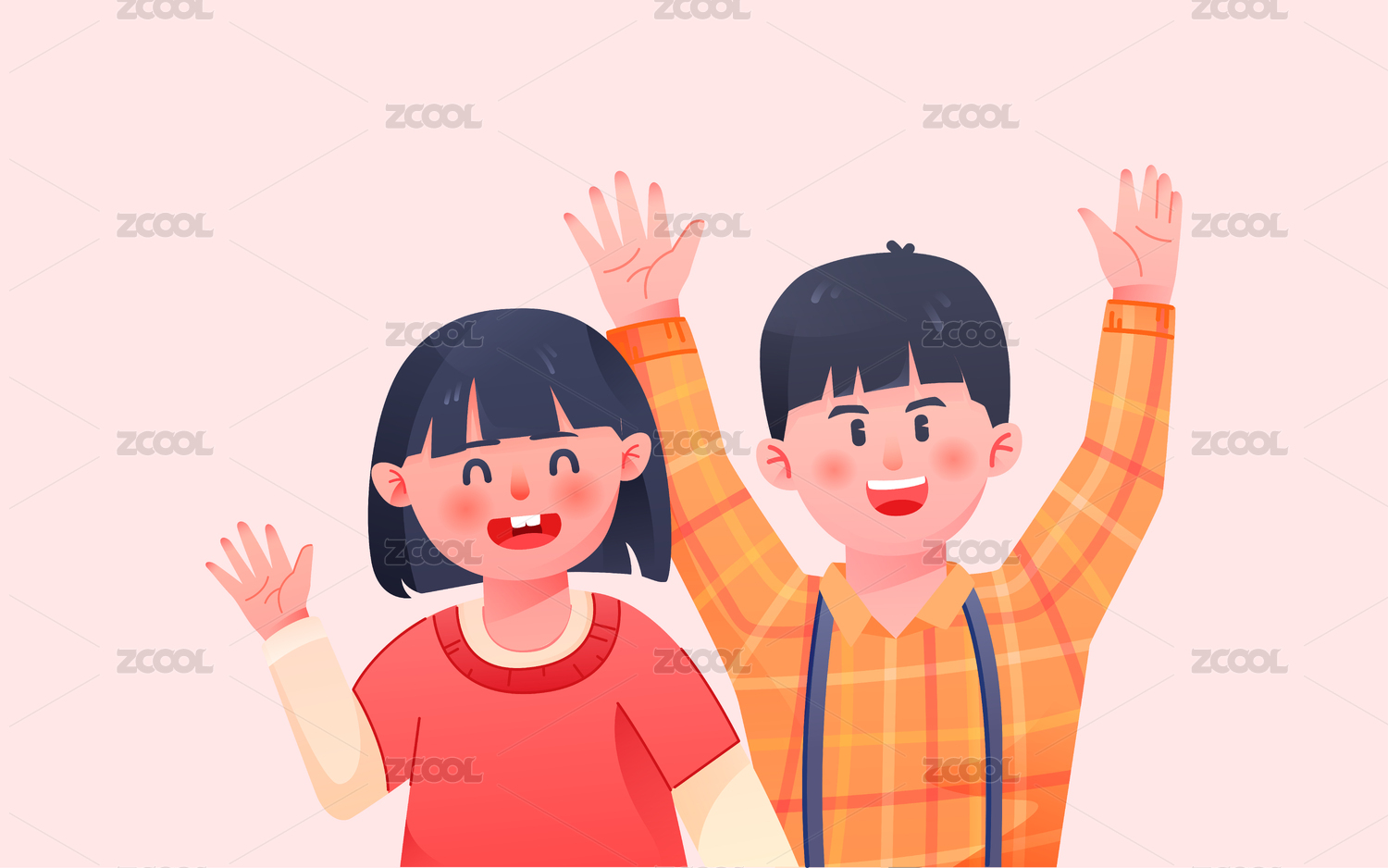 六一儿童节男孩女孩挥手笑脸开心矢量插画