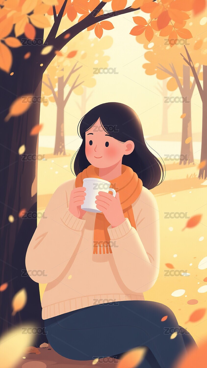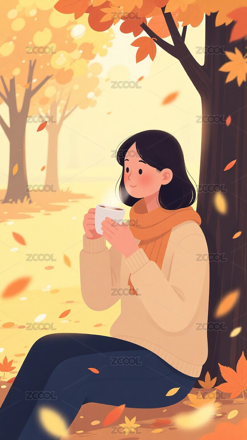 秋分立秋霜降立冬一秋冬节气女孩落叶插画
