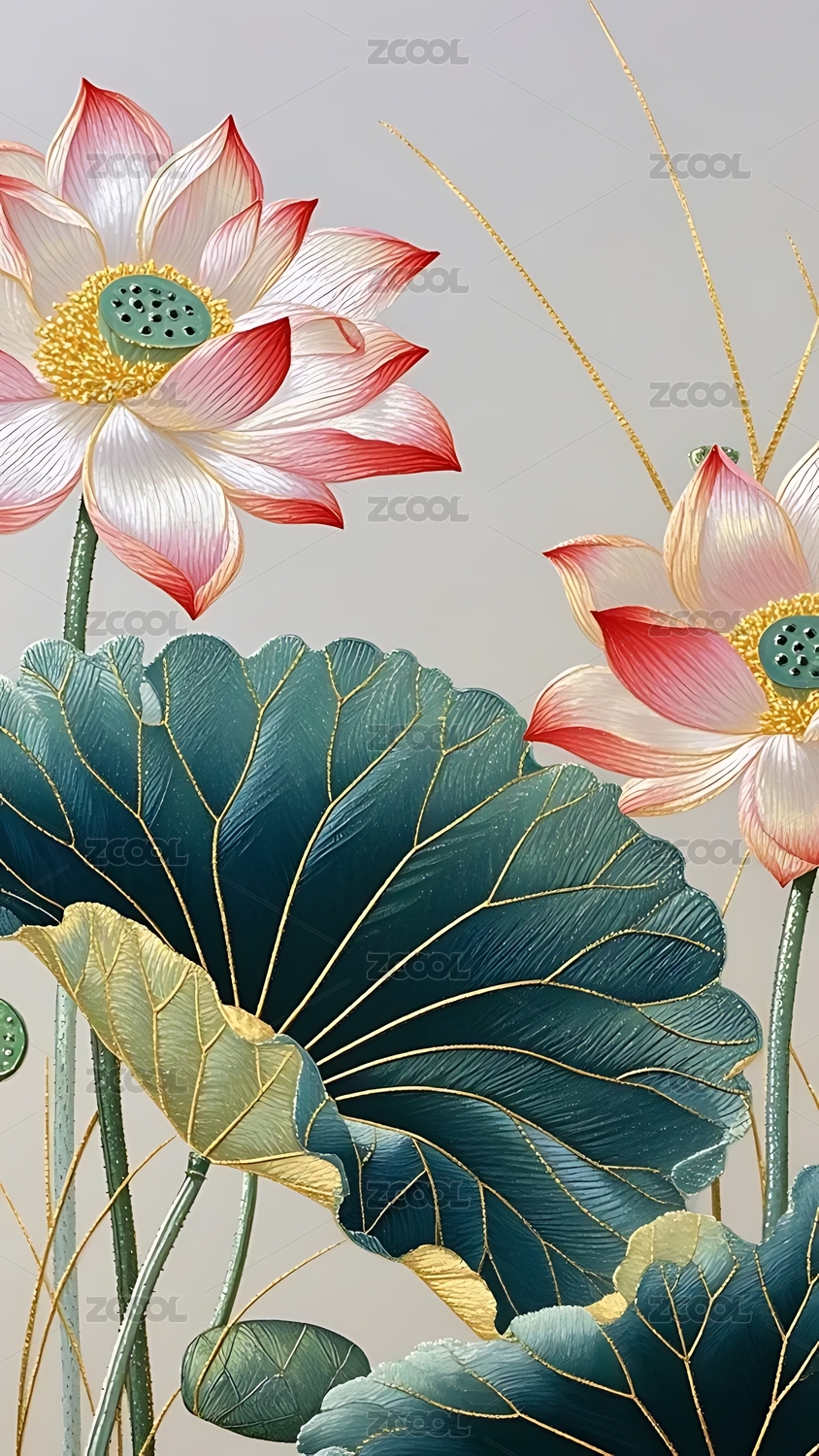 禅意,贴纸,海报,洒金,描金,荷花,背景