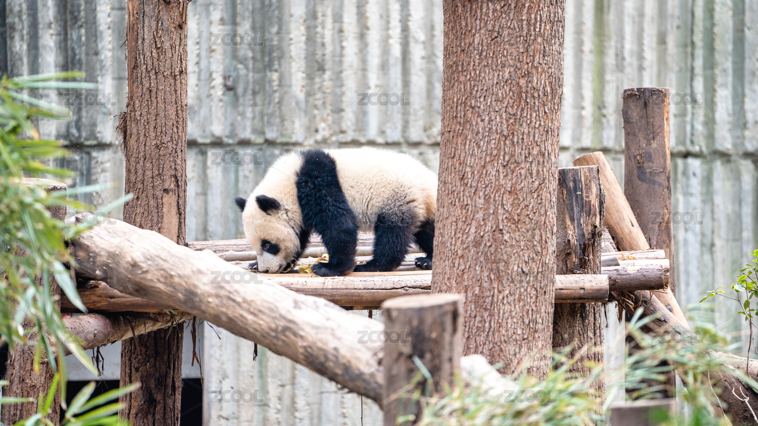 成都大熊猫繁育研究基地四处张望的大熊猫