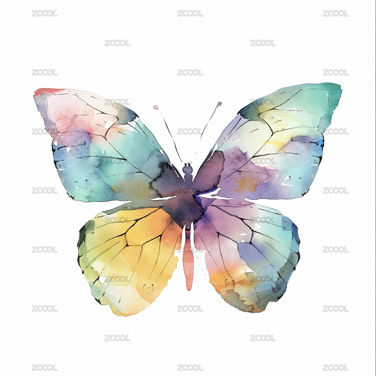 梦幻水彩蝴蝶白底图
