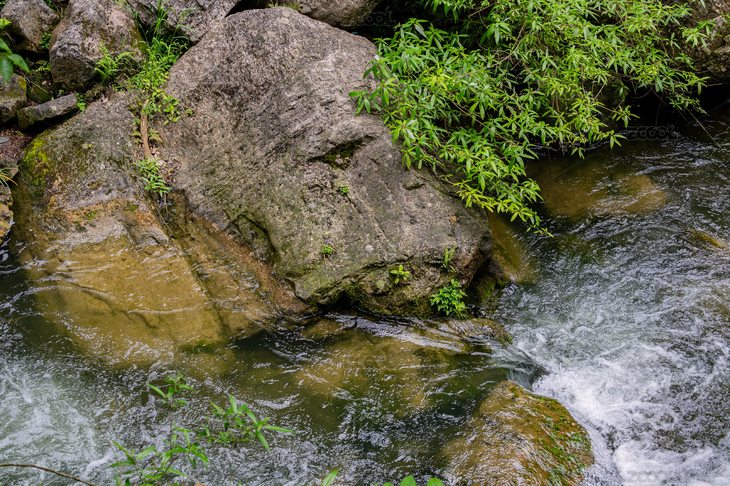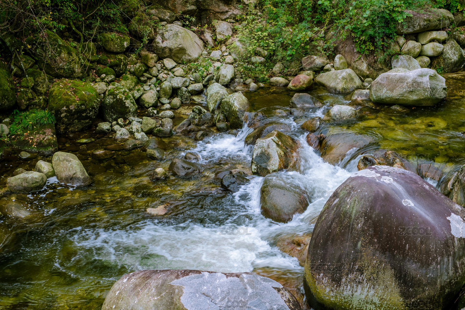 青岛市崂山北九水景区慢门拍摄丝绸般的溪流