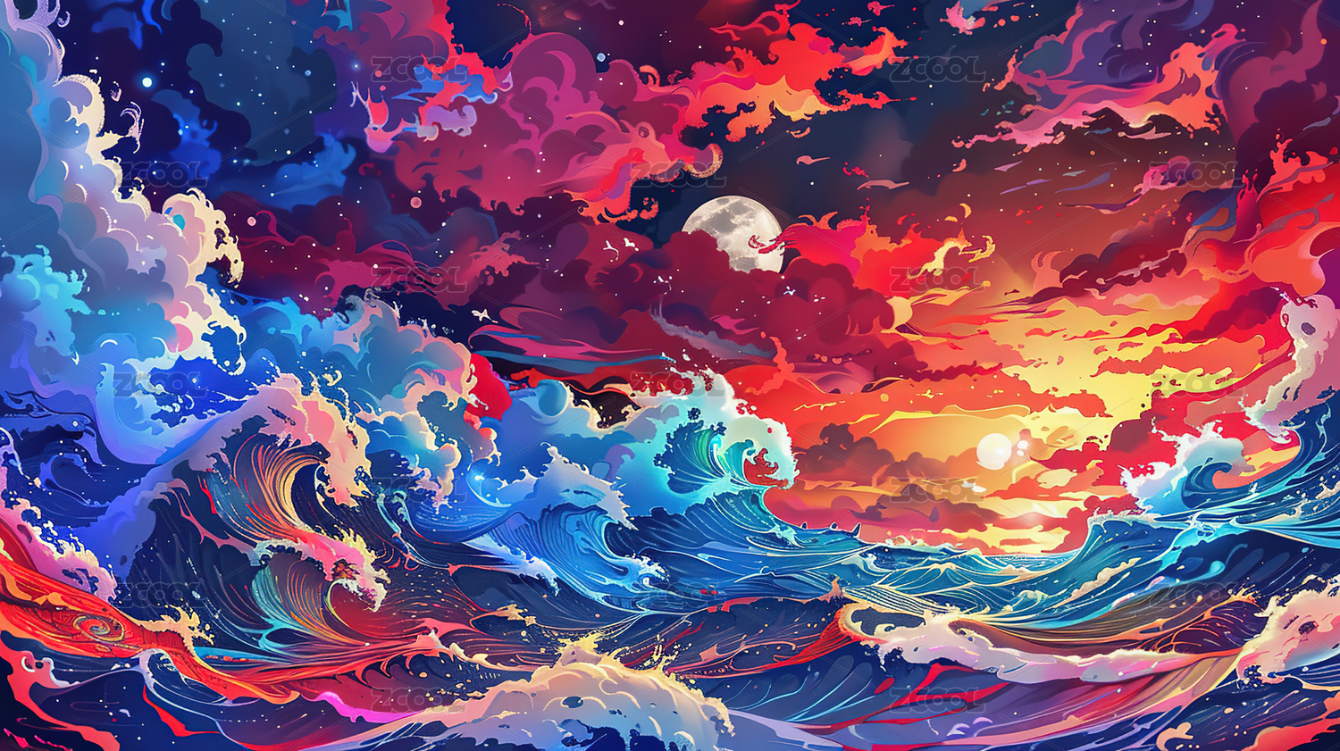 云彩,多彩,梦想,天空,景观,风景,场景,绘图,插画,图形