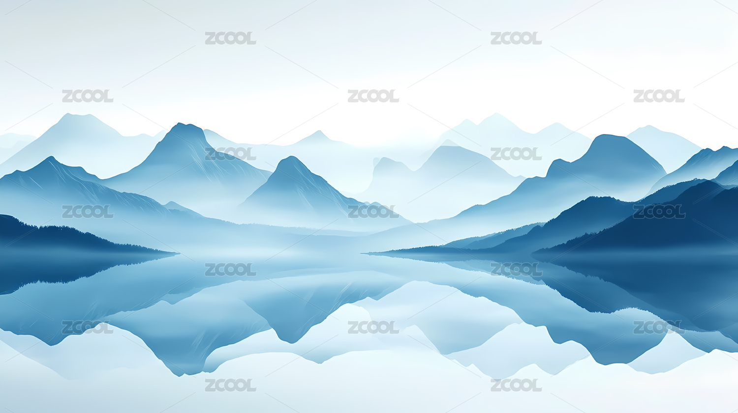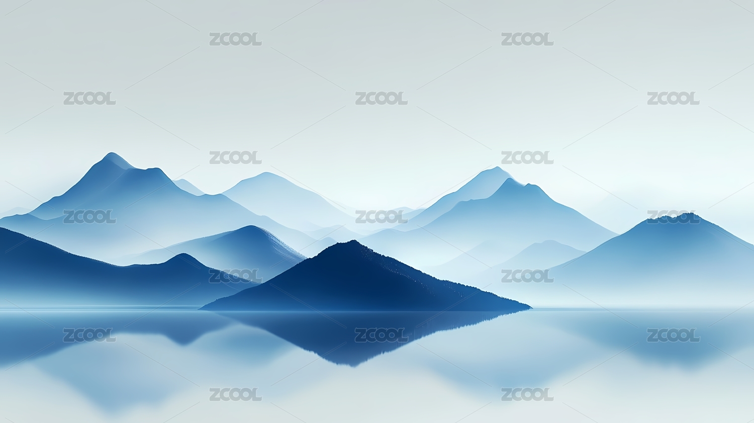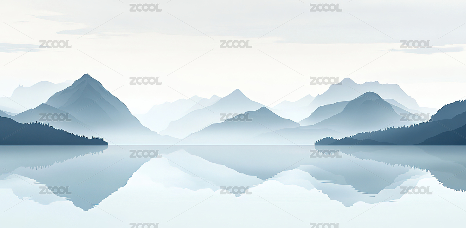 淡蓝水墨风格山景