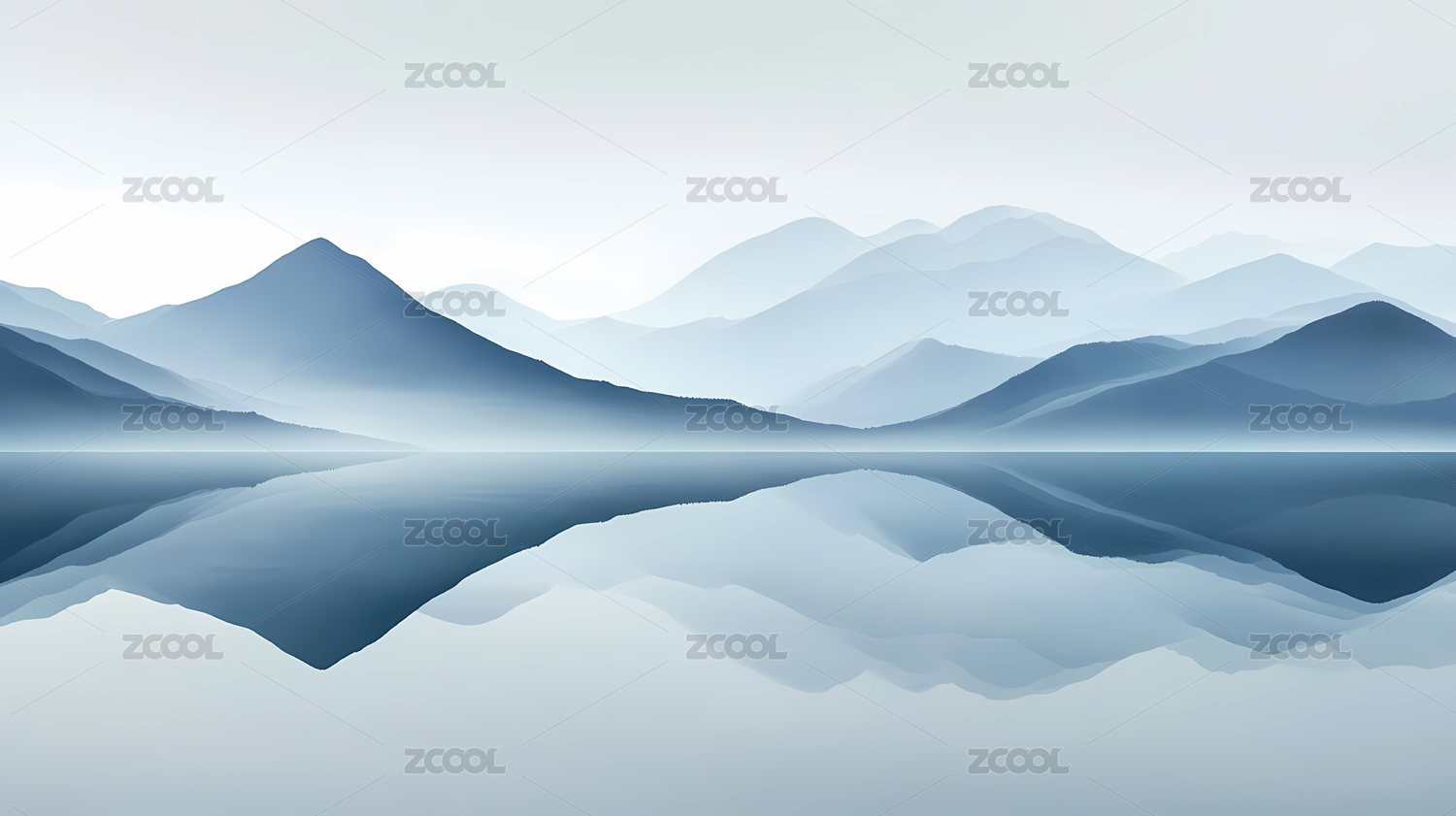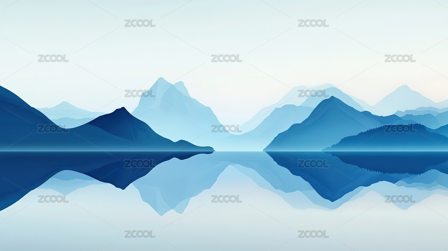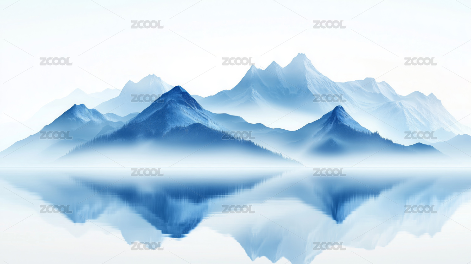 淡蓝水墨风格山景