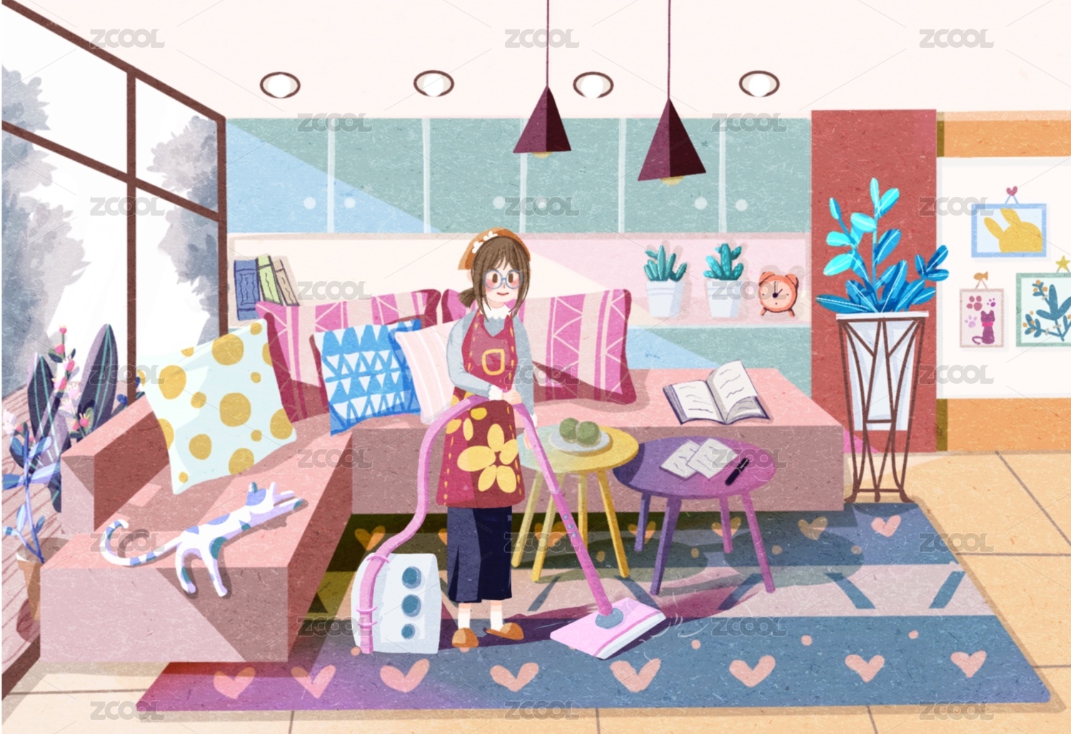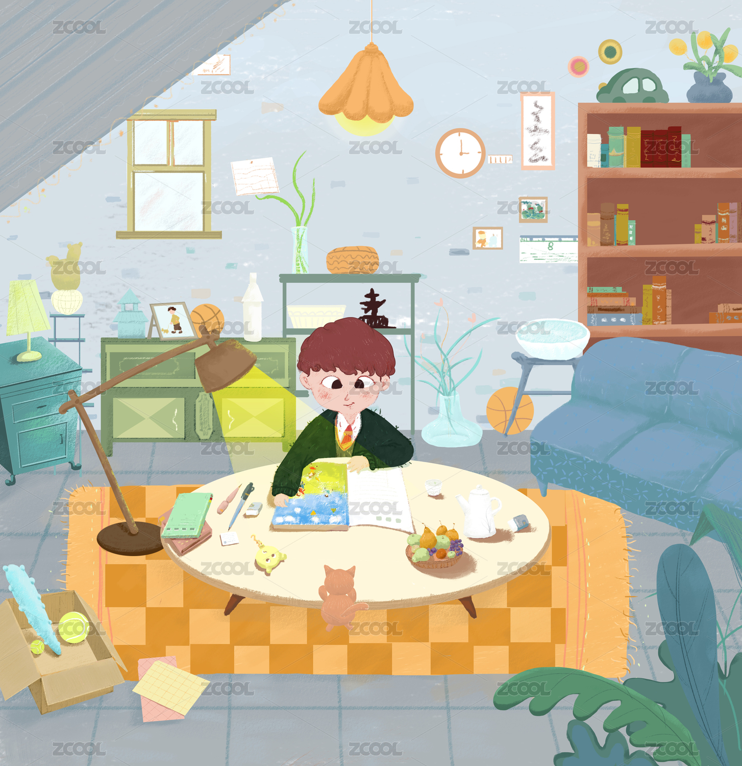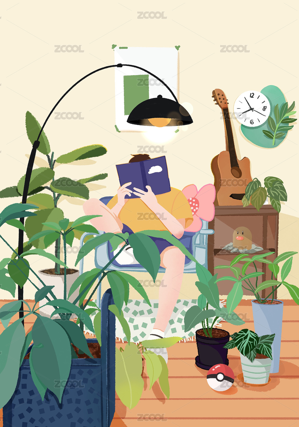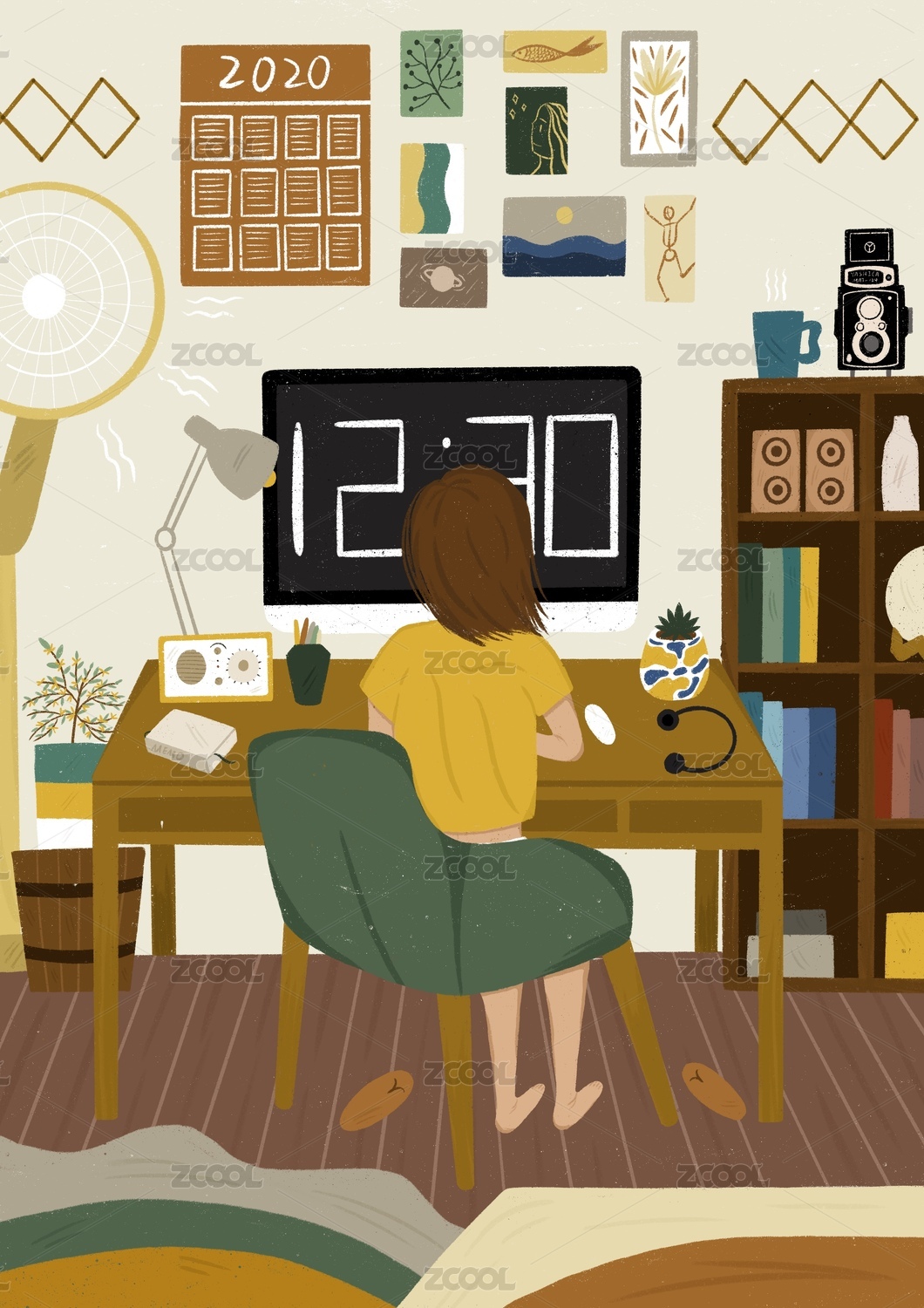 房间,电脑,上网,休闲娱乐,海报,床,插画