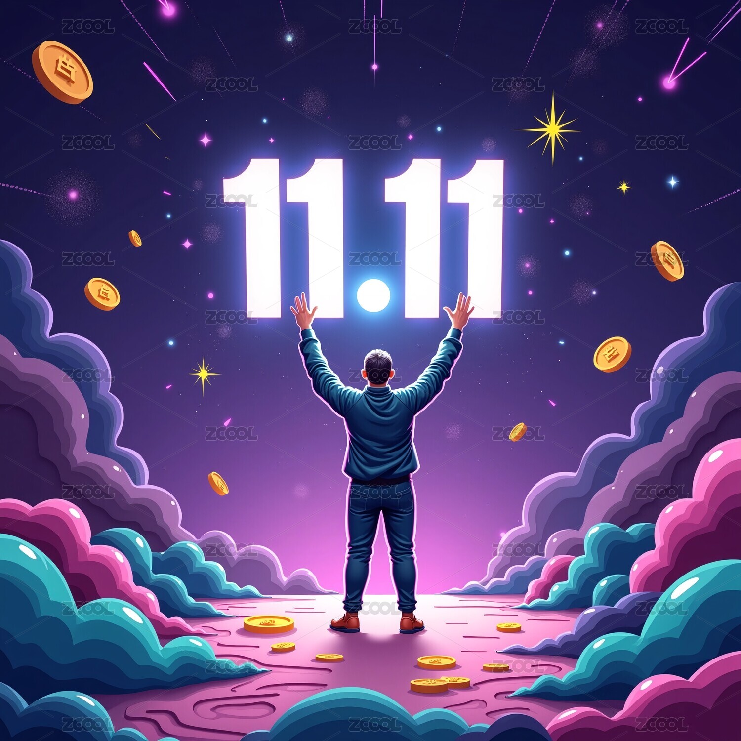 DXCZ202401,电商,双十一,购物,单身节,插画,主标题,场景,金币,夜空