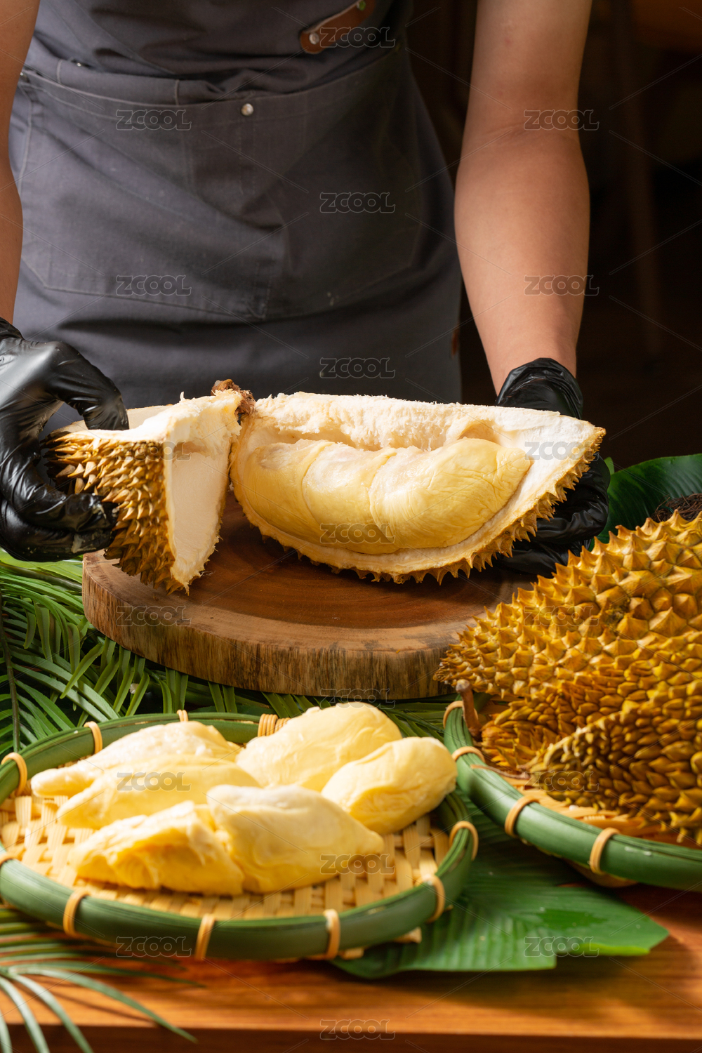 厨师在剥榴莲