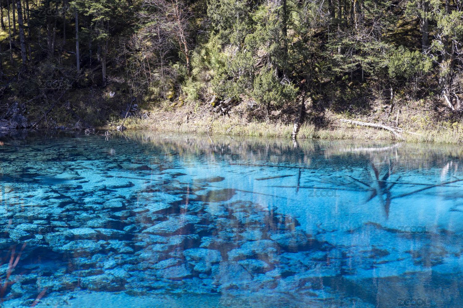 四川省阿坝州九寨沟-湖面上的浮木景观