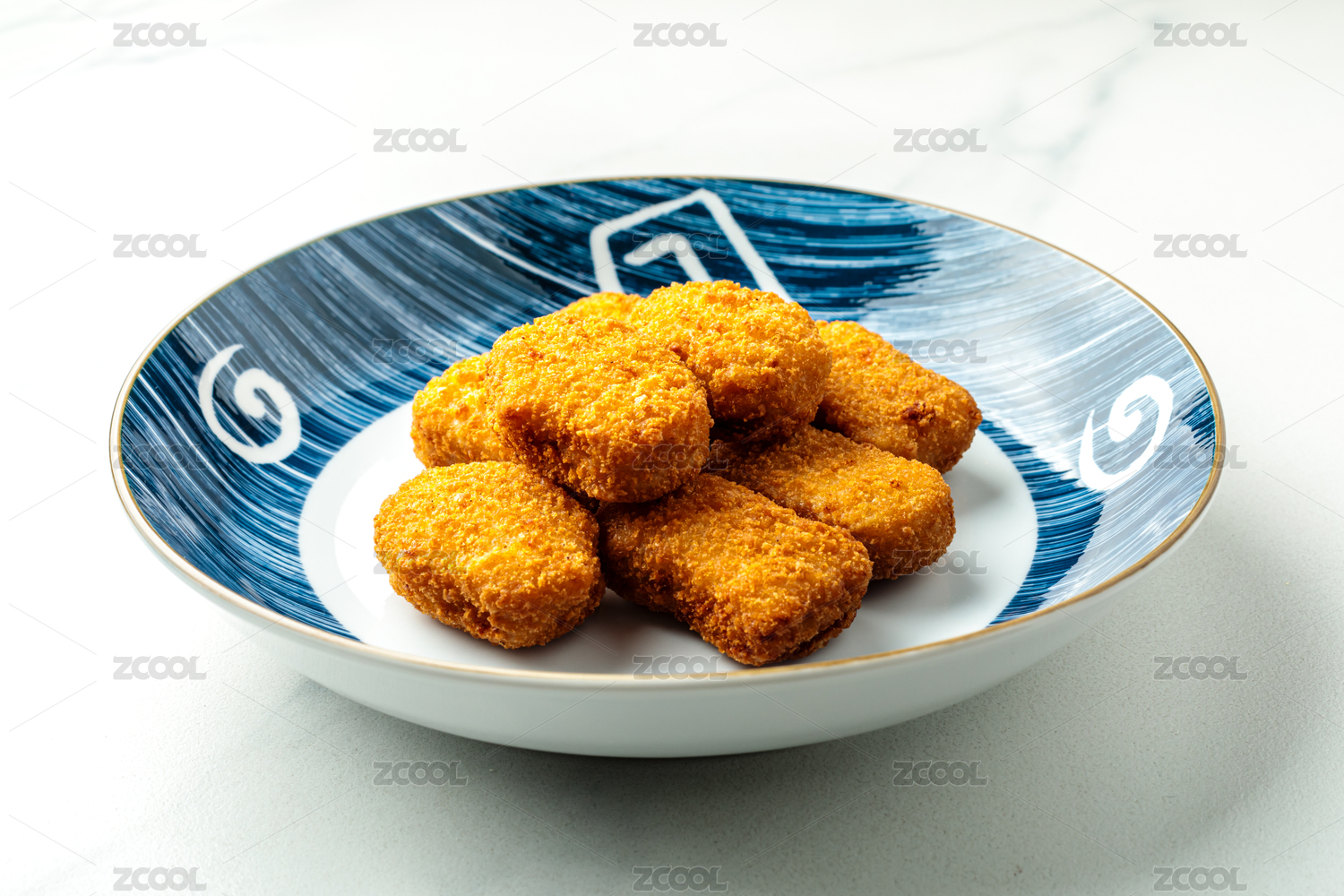 白色背景一盘炸鸡块