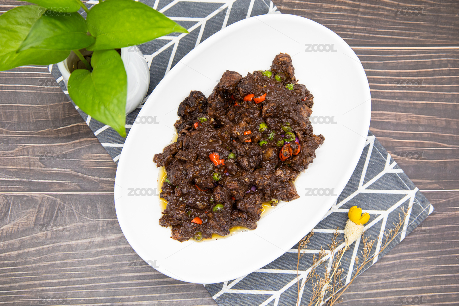 黑色背景一盘特色湘菜酱血鸭