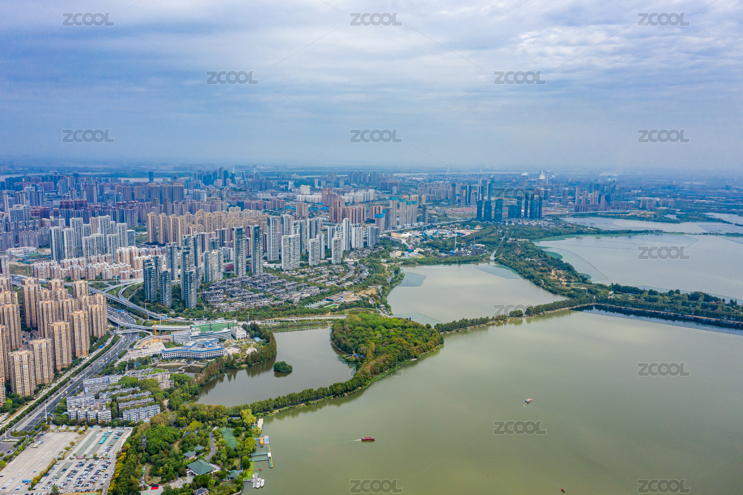武汉东西湖区金银湖城市风光