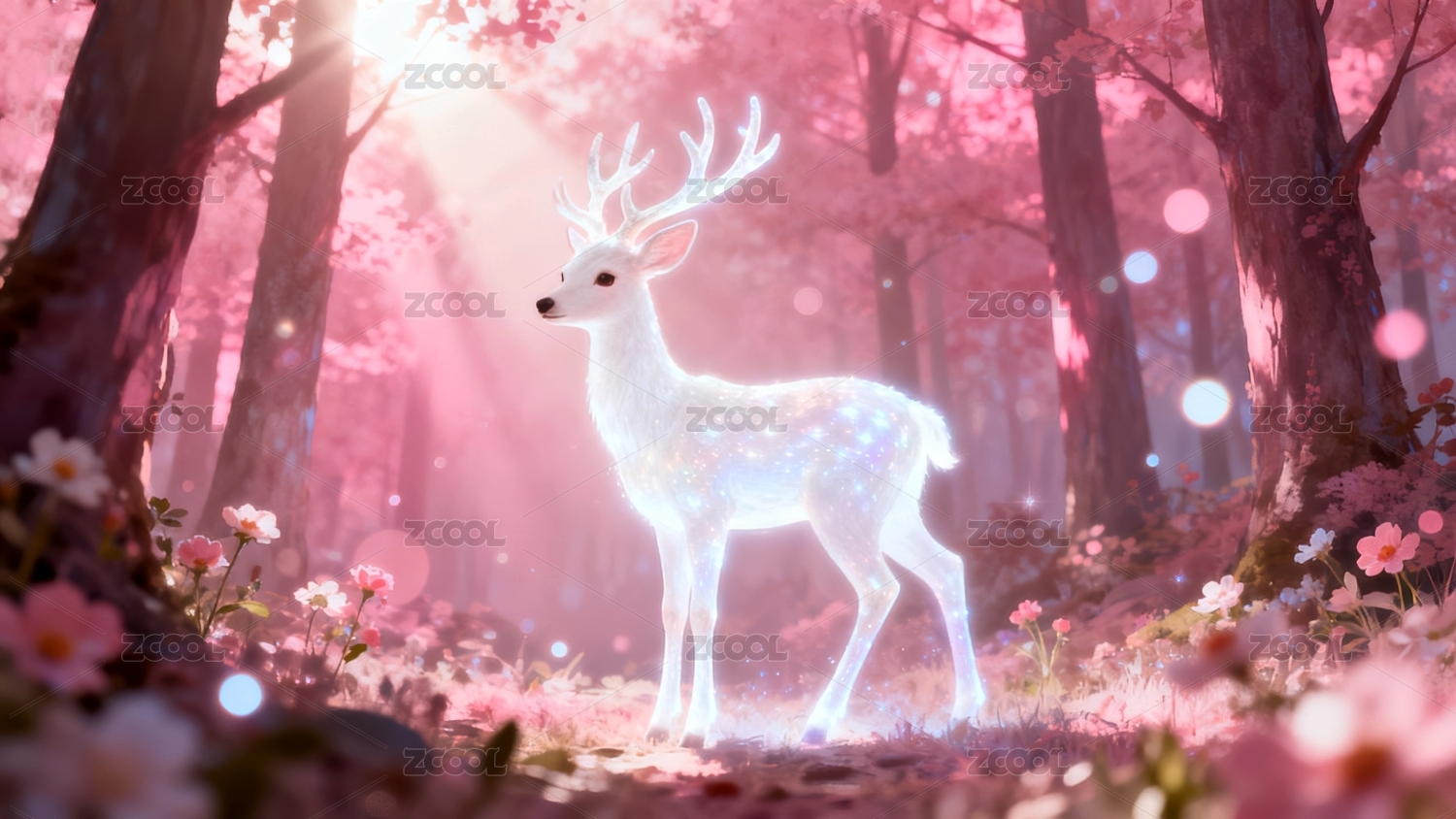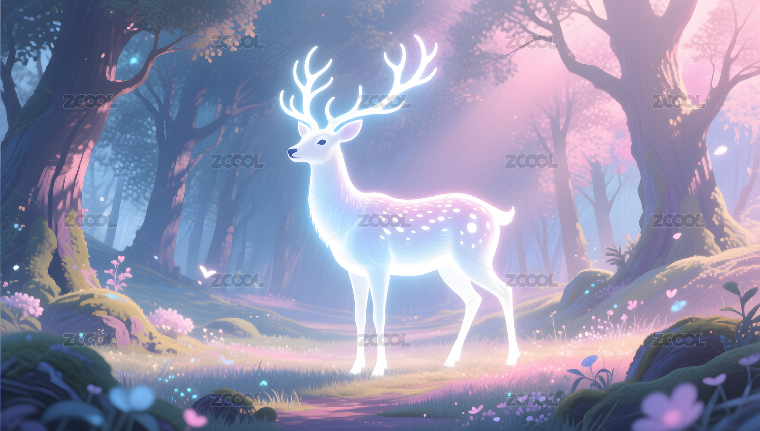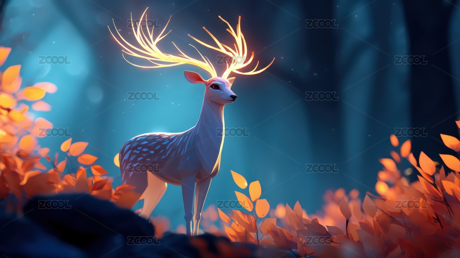 3D渲染国潮风插画梦幻唯美发着光的神鹿