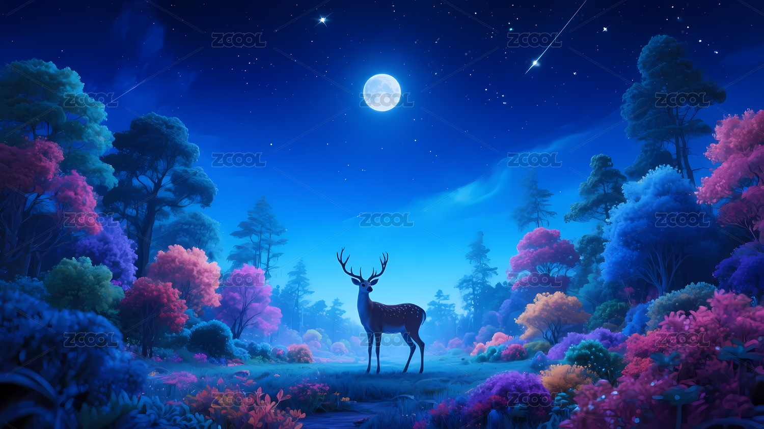鹿,彩虹,梦幻,神话,天空,云彩,星星,星球,粉色,蓝色