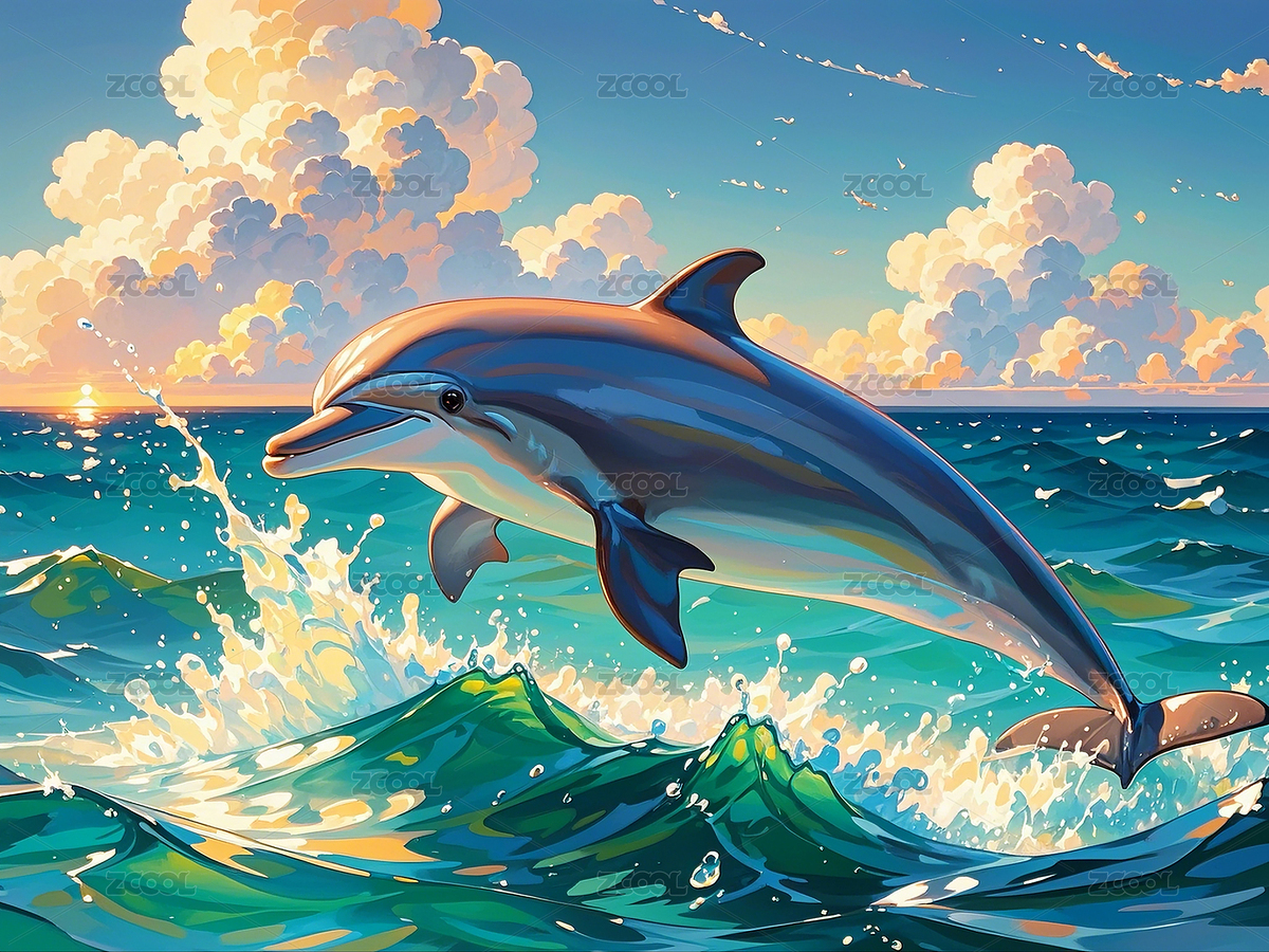 海豚跃出碧波闪耀阳光