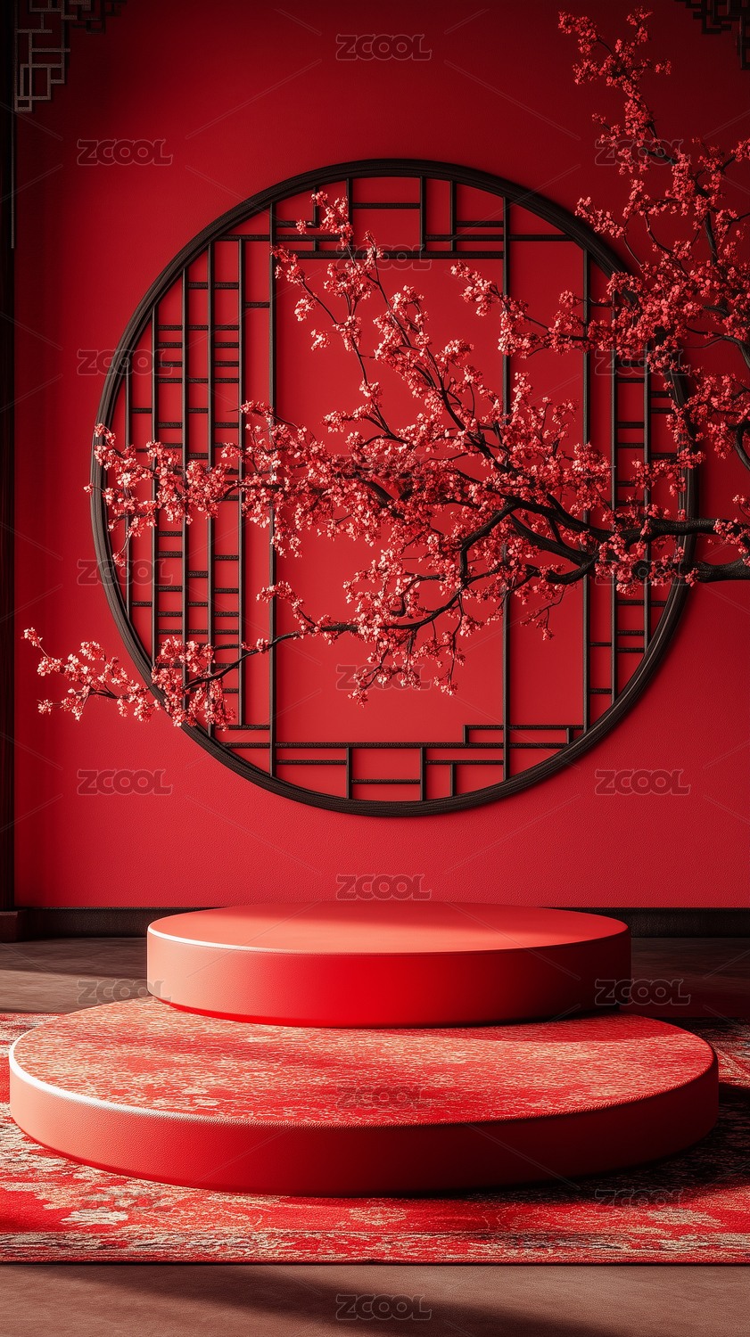 中国风红色背景古典商品展台