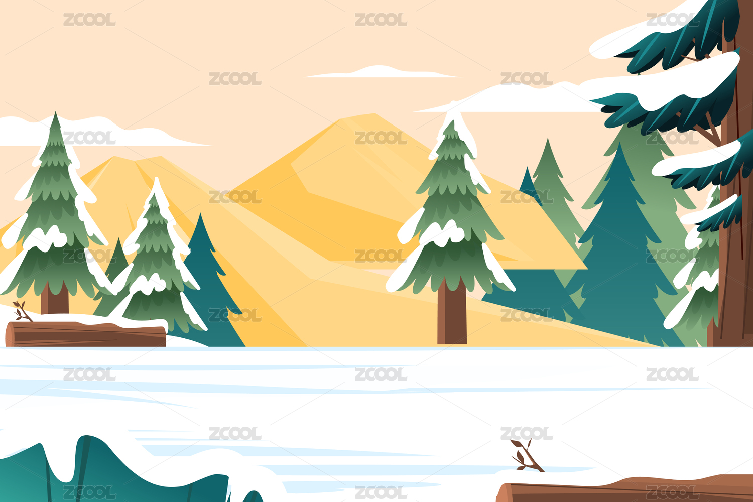 冬天自然风光插画