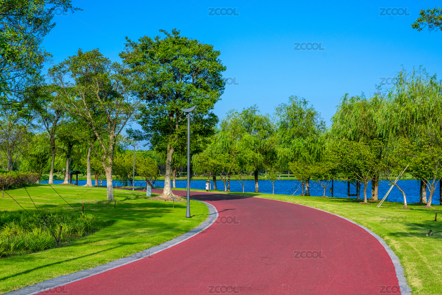早晨公园基础设施健康步道骑行路