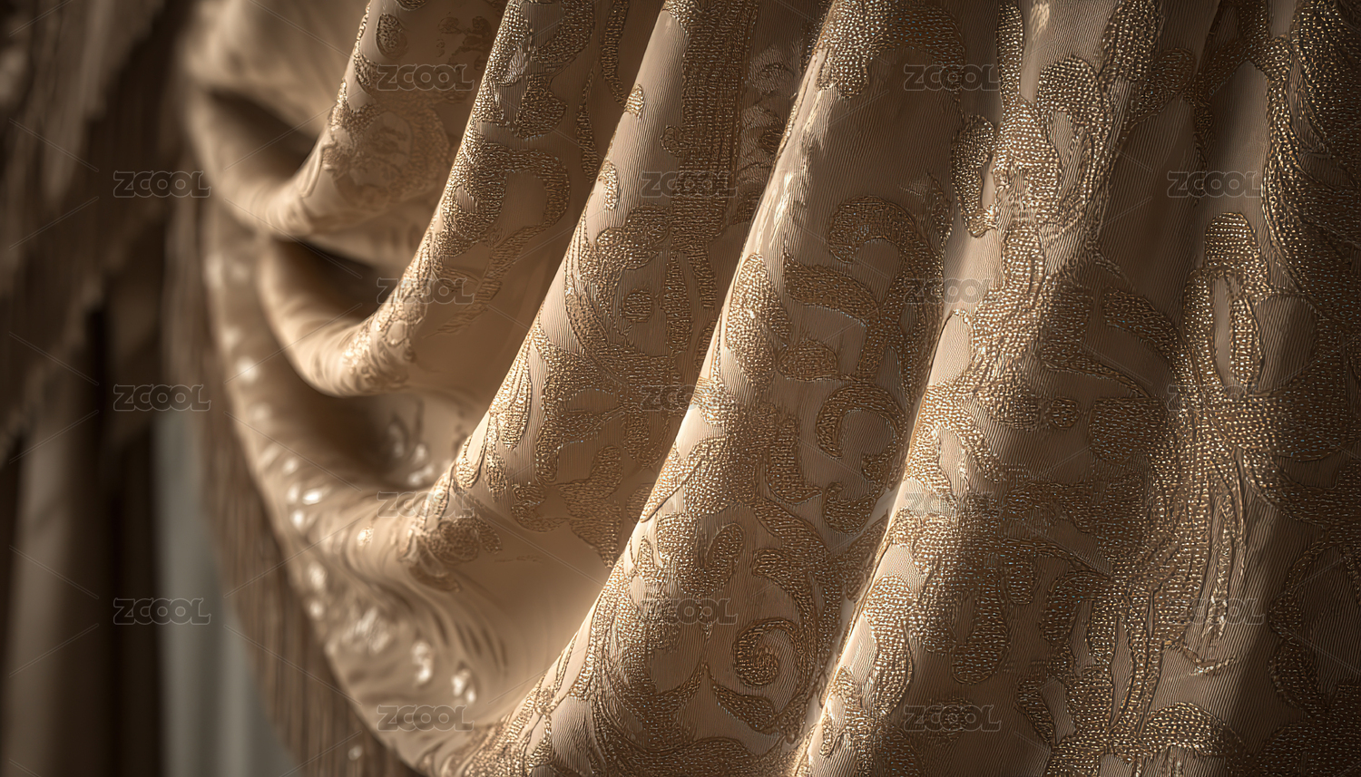 精美的绒布绣花窗帘帷幔