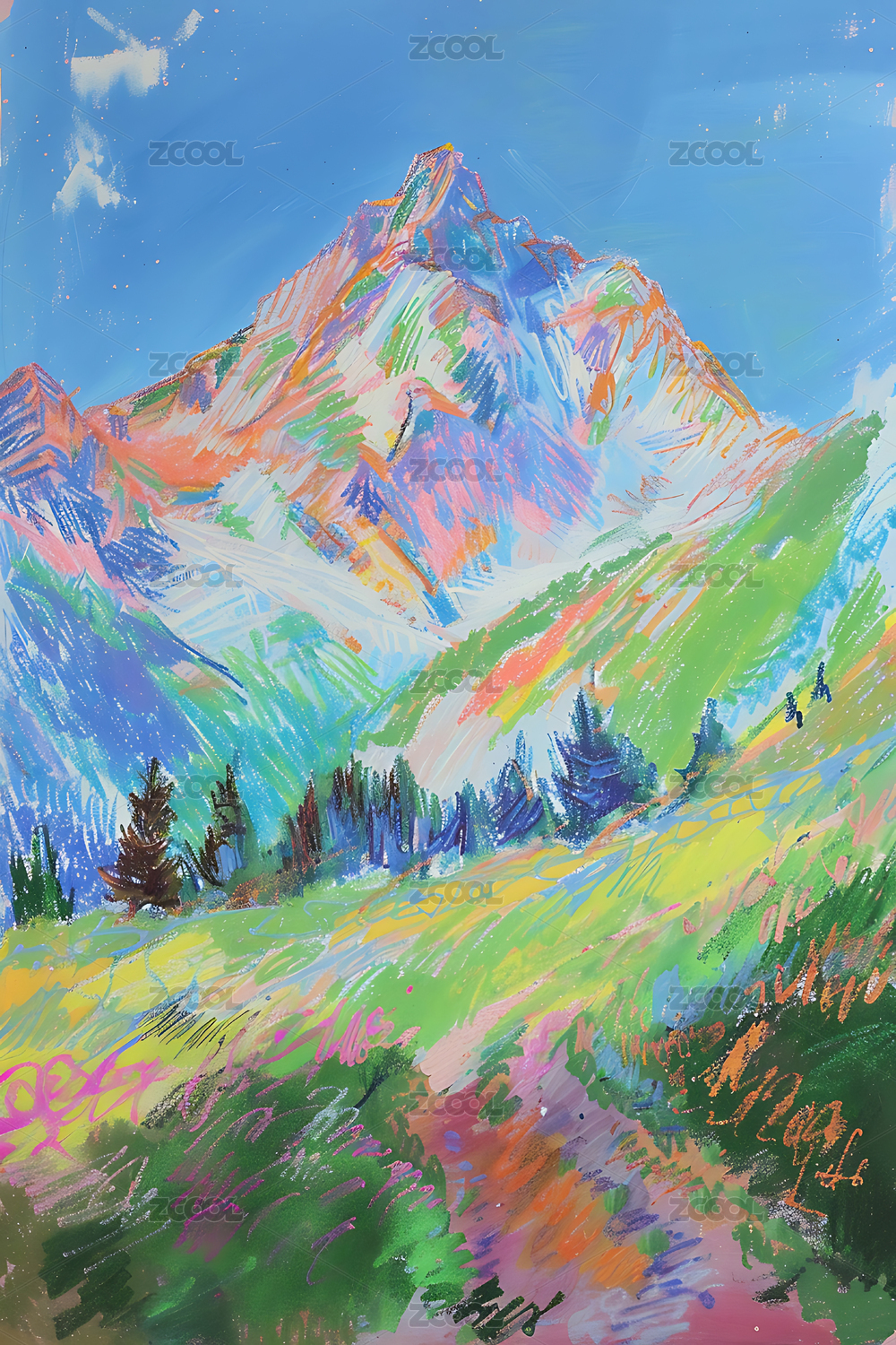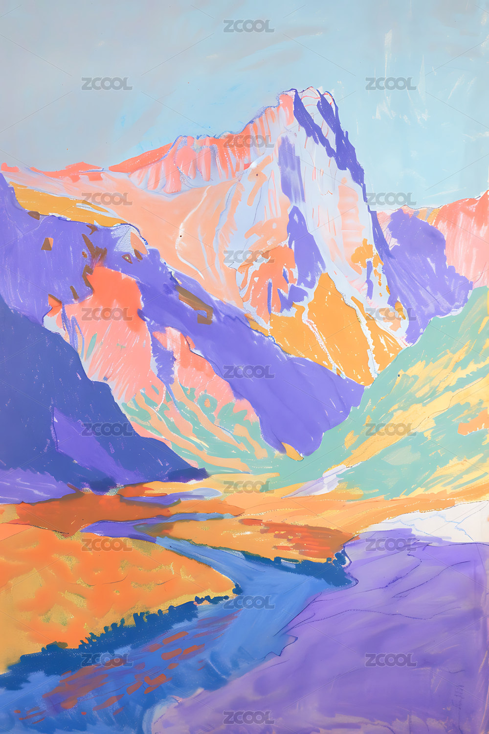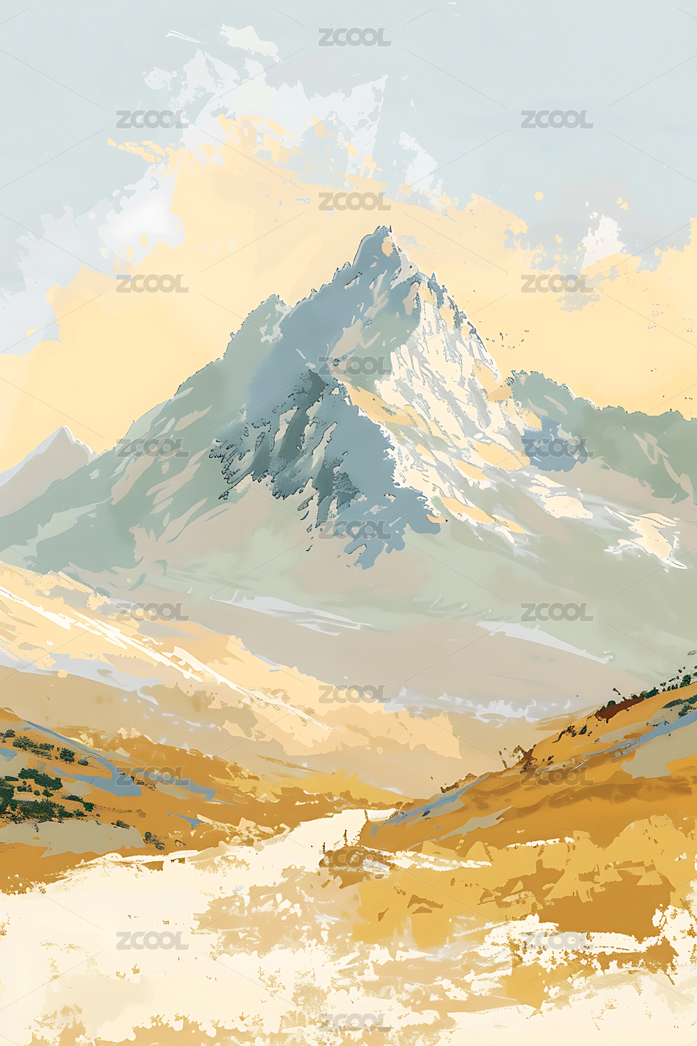 高山,自然,山,插画,水彩,水粉,山脉,雪山,油画,风景