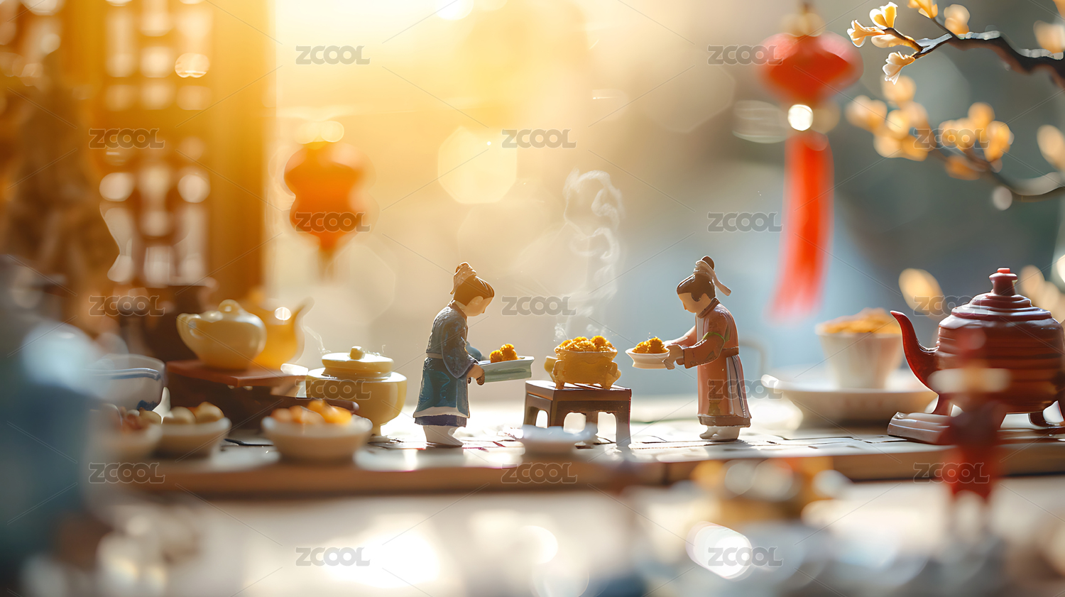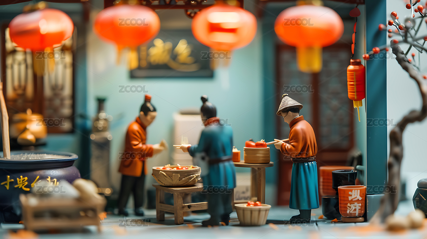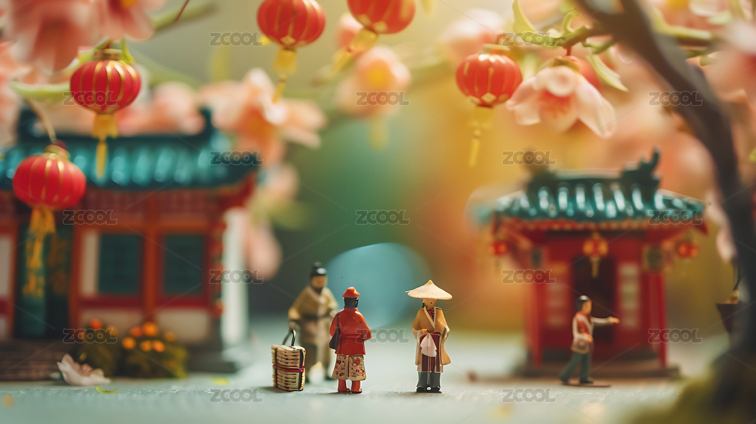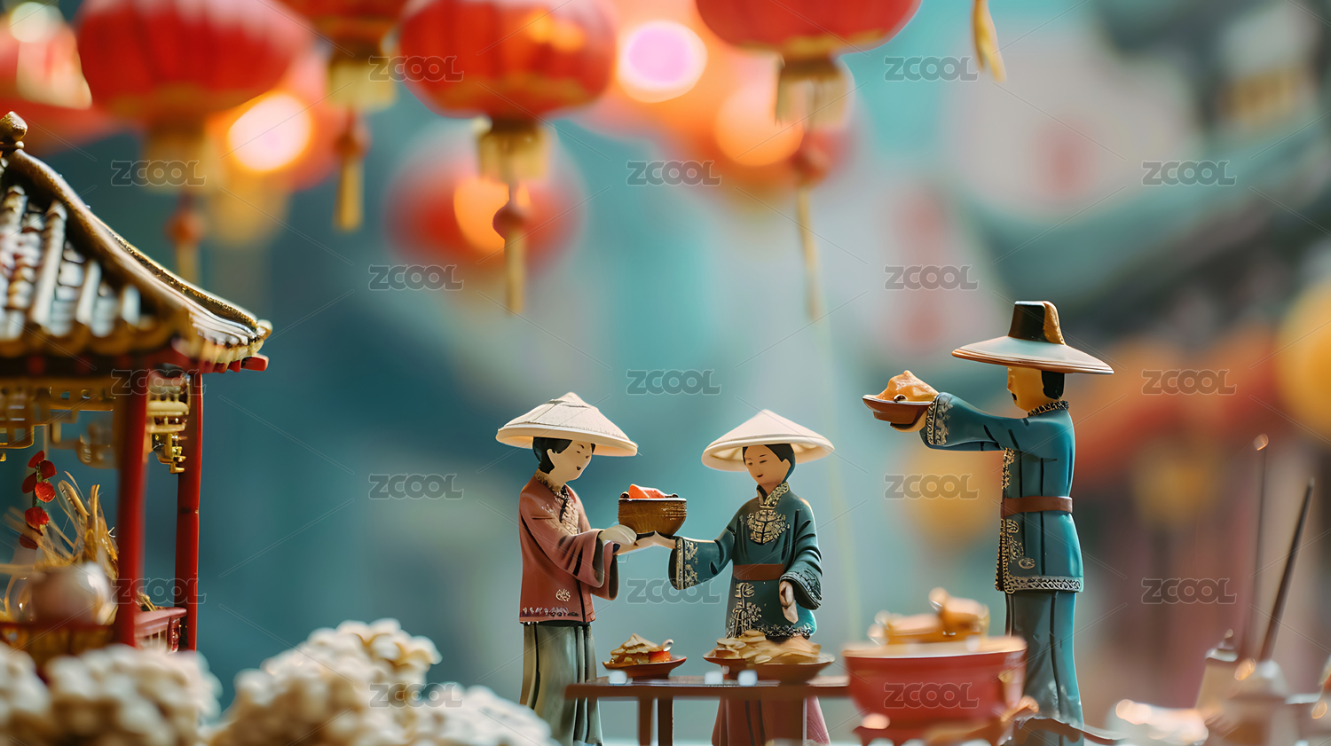 古风,国风,微缩,粘土,古代,村庄,农民,模型,3d