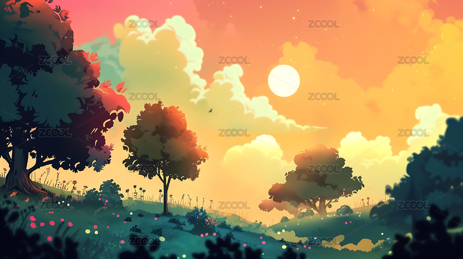 插画,卡通,游戏,动画,手游,背景,风景,自然,植物,场景