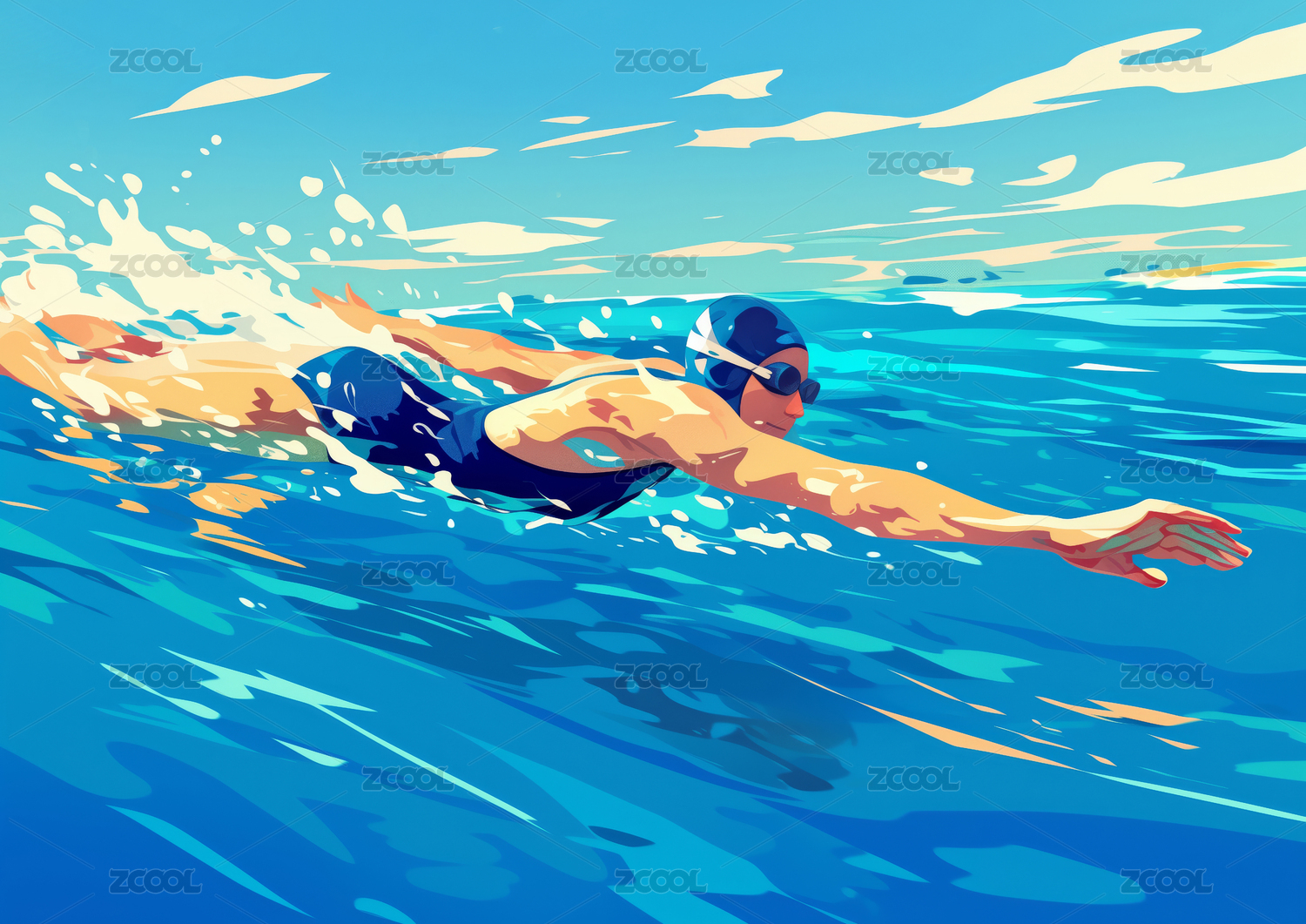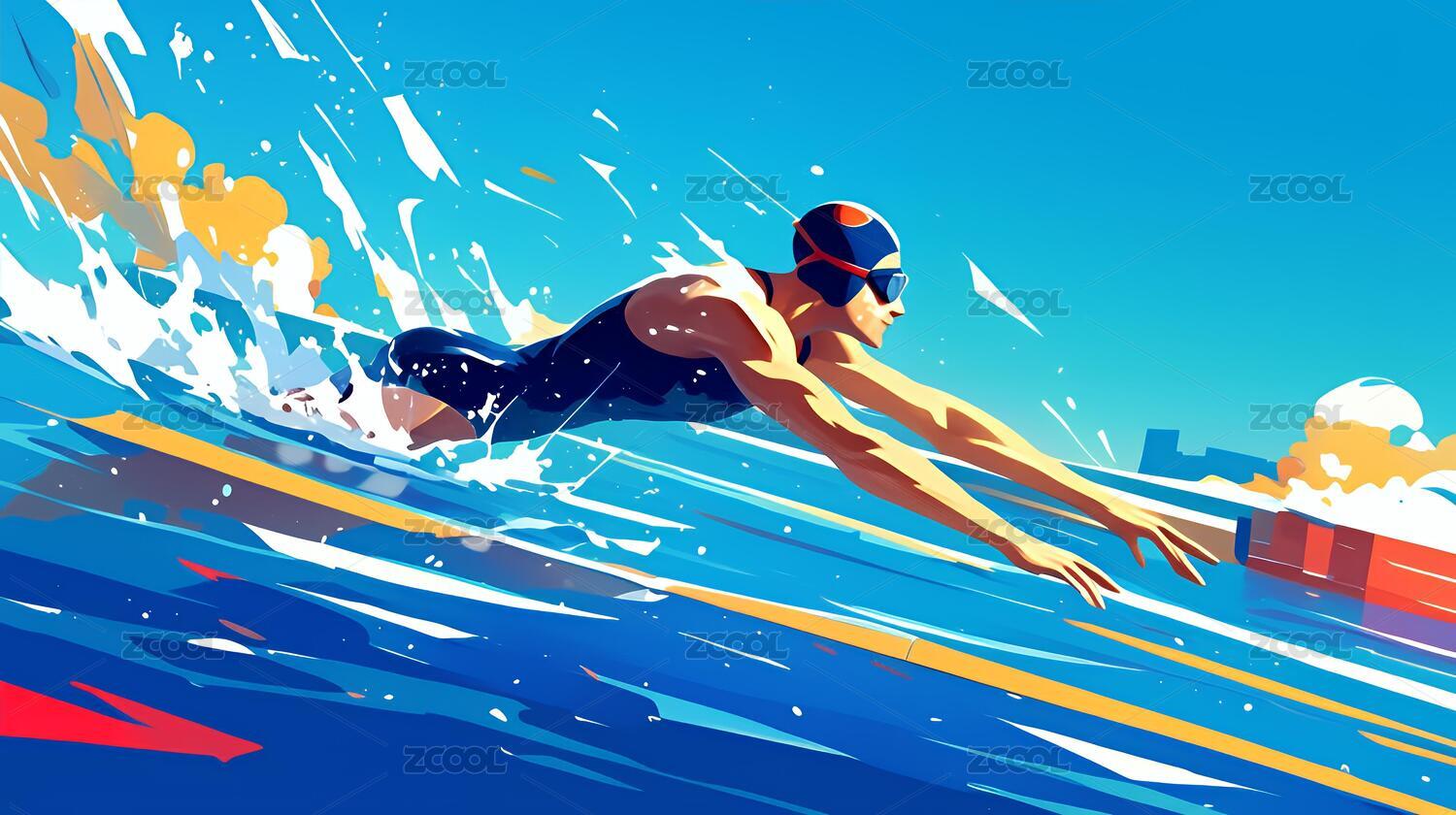 游泳运动员酷炫潮流插画