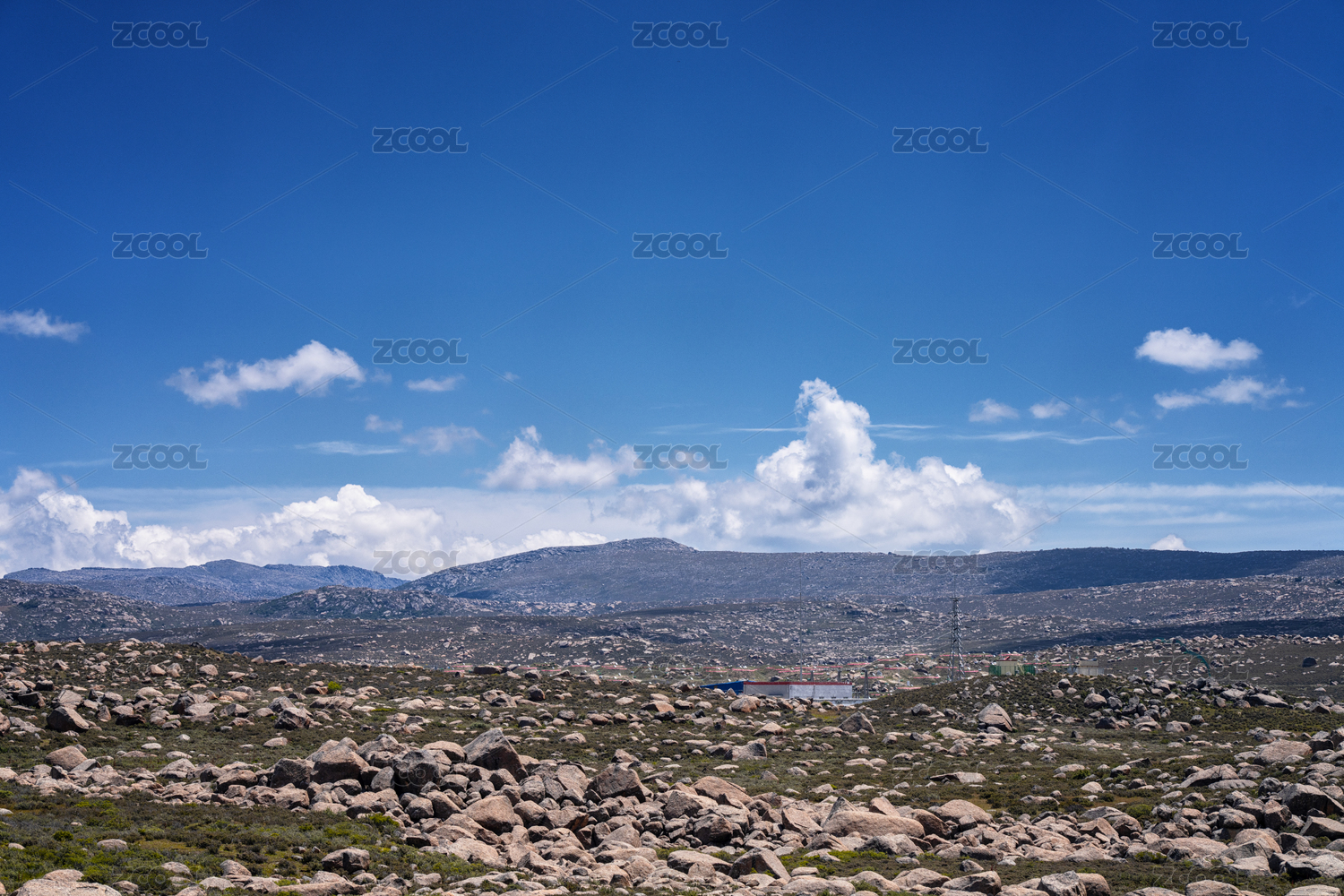 蓝天白云下的中国四川海子山国家级自然保护区自然风光