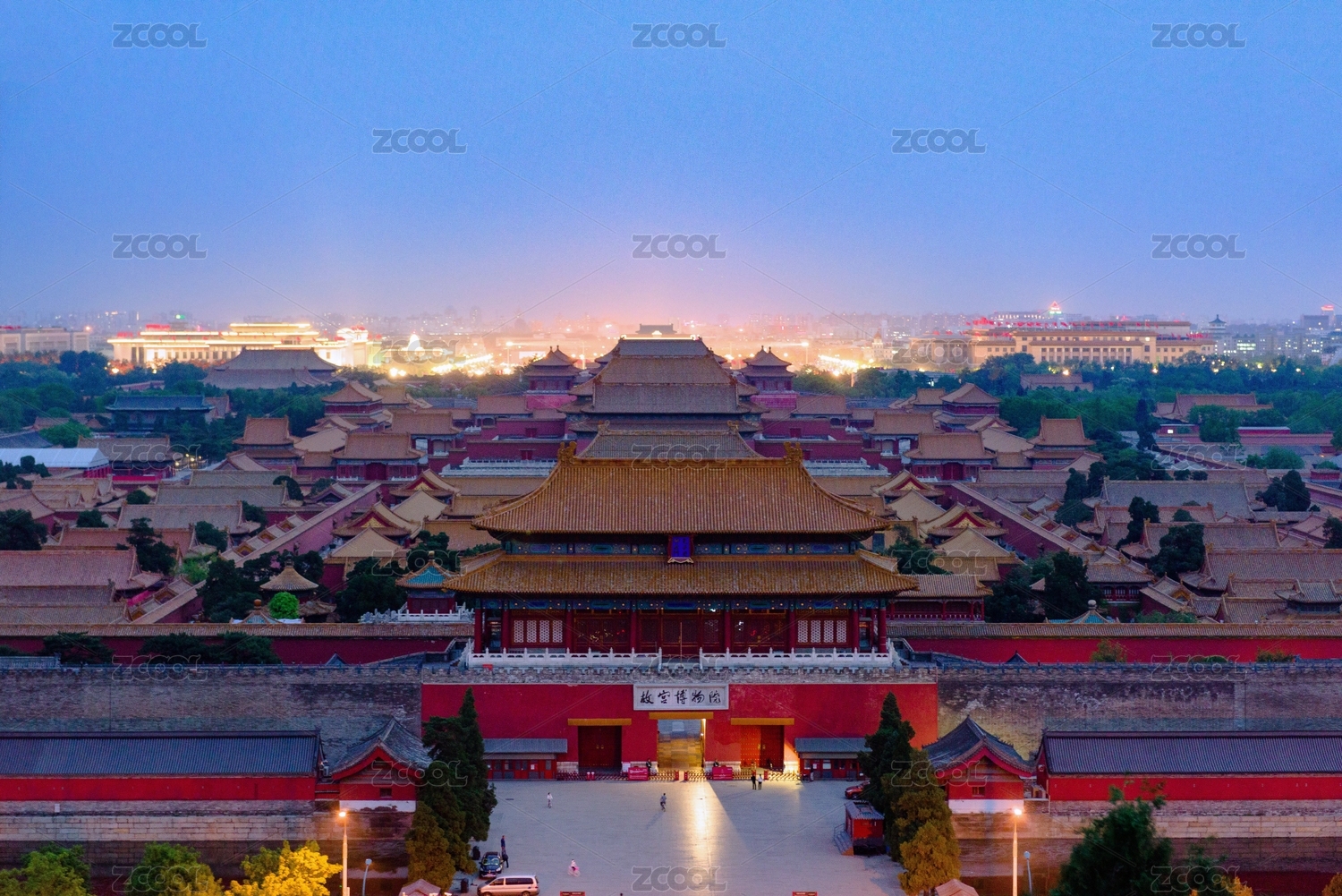 中国北京景山公园俯瞰华灯初上的紫禁城