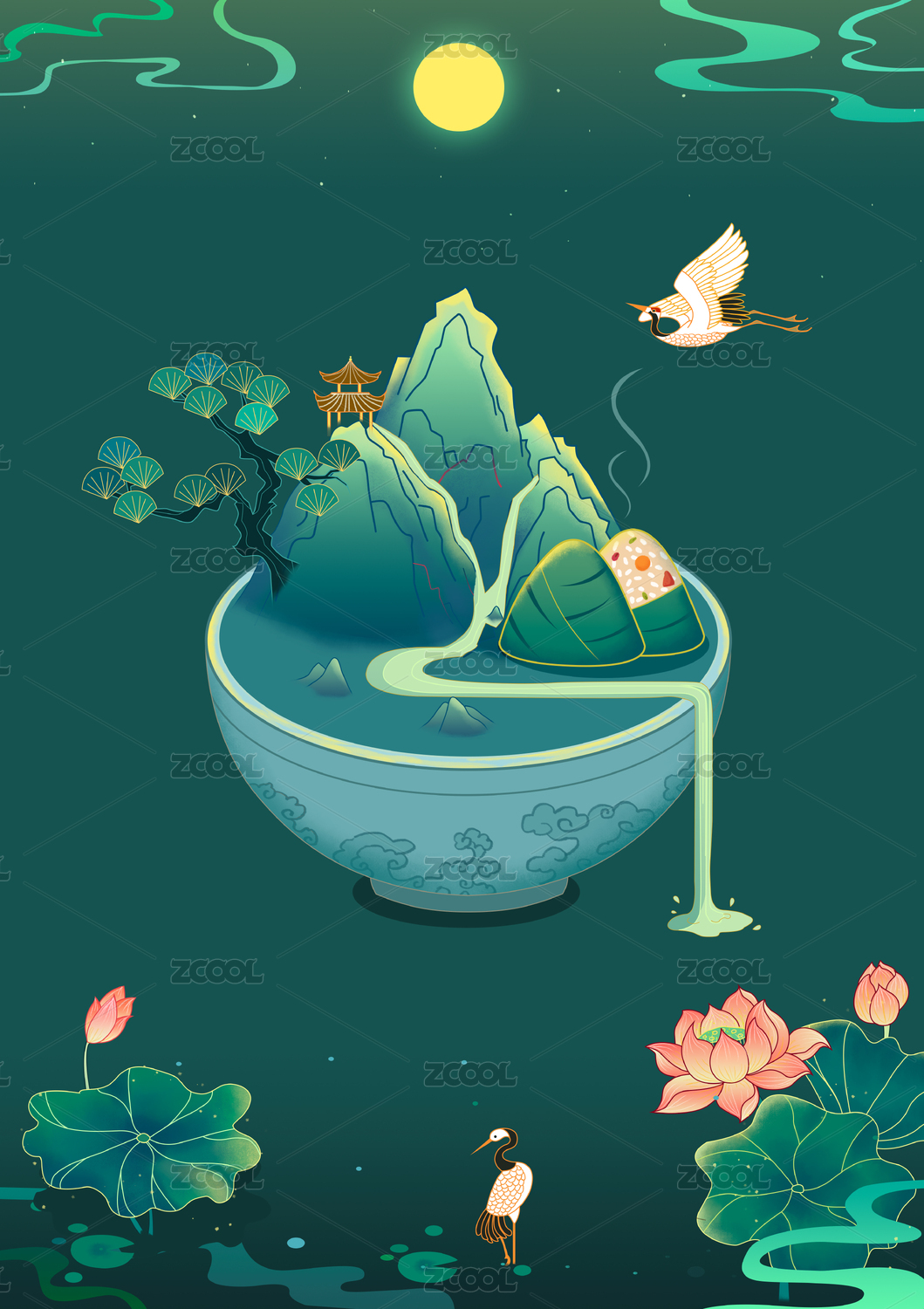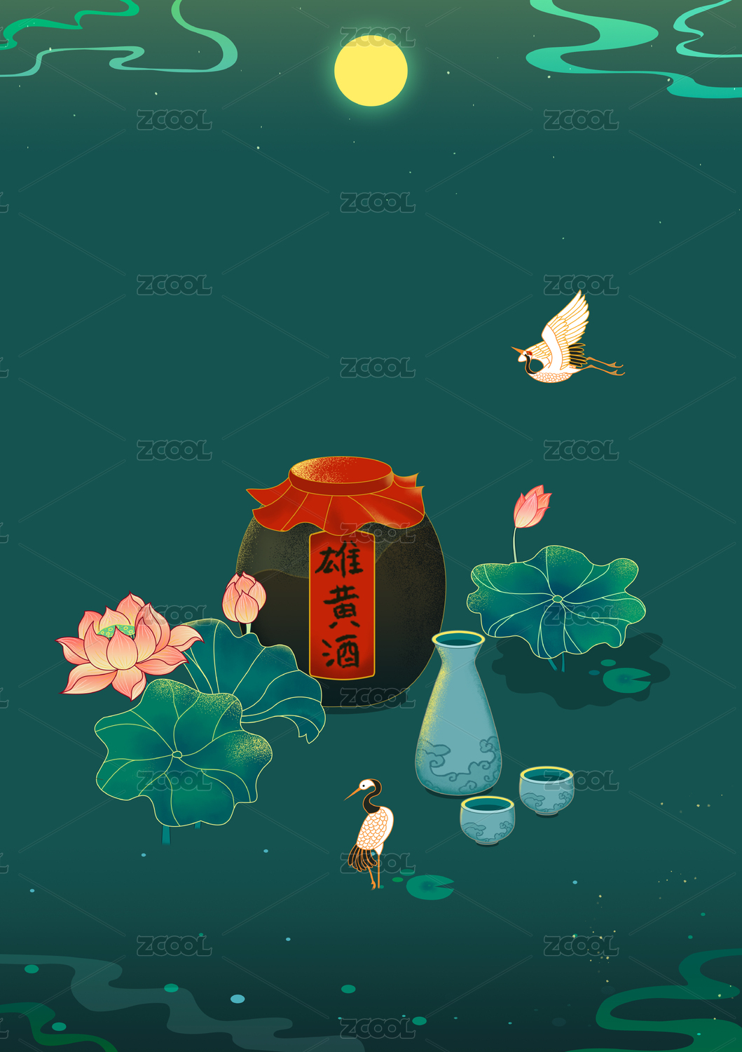 端午节划龙舟吃粽子喝雄黄酒中国风插画