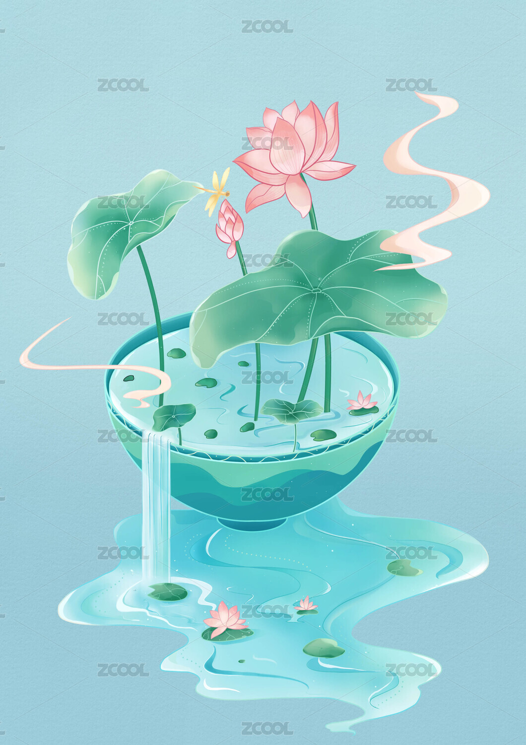 HECSUI2020,立夏,夏至,夏天,夏季,月夜,青花瓷,碗,荷花,荷叶