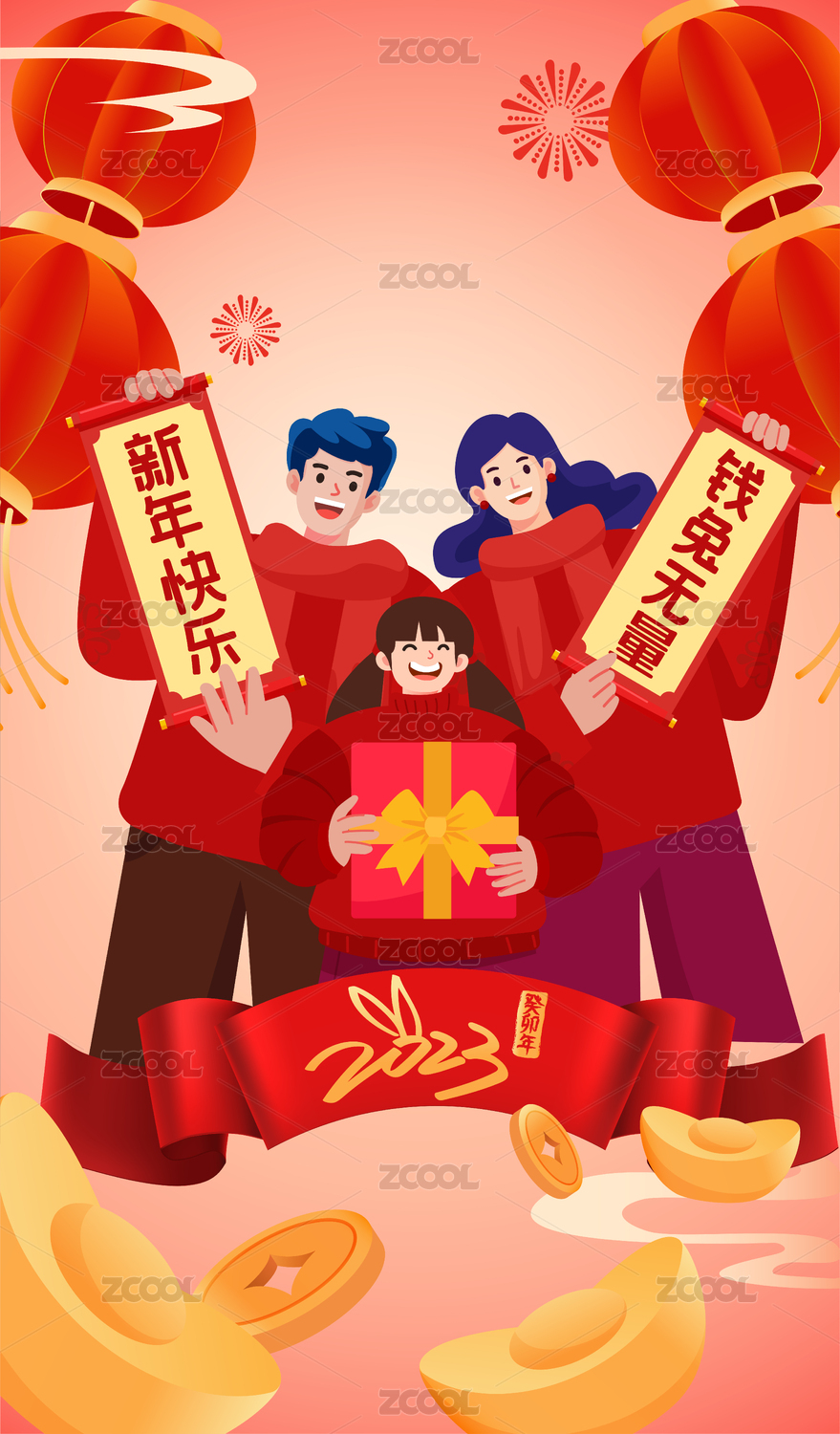 卡通2020鼠年新年家人红包活动背景矢量插画