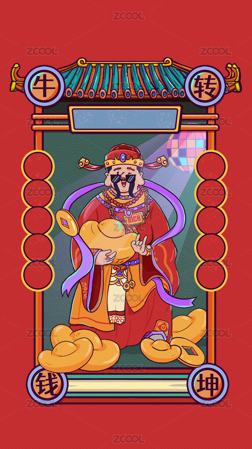 春节新春过年财神元宝节日红色祥云卡通原
