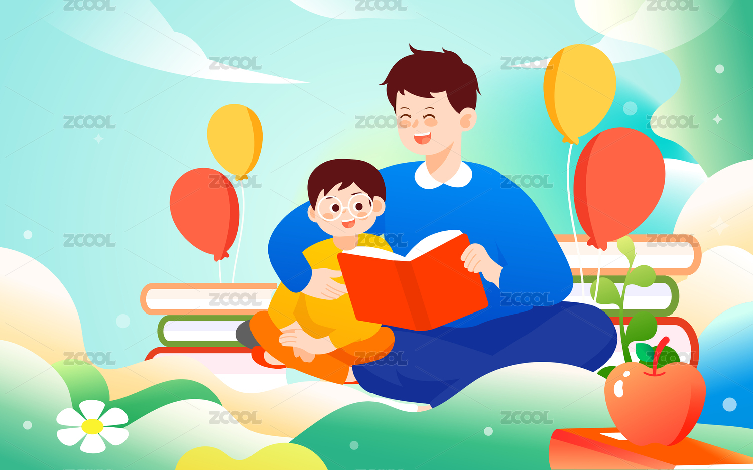 开学季亲子教育阅读世界读书日亲情陪伴插画