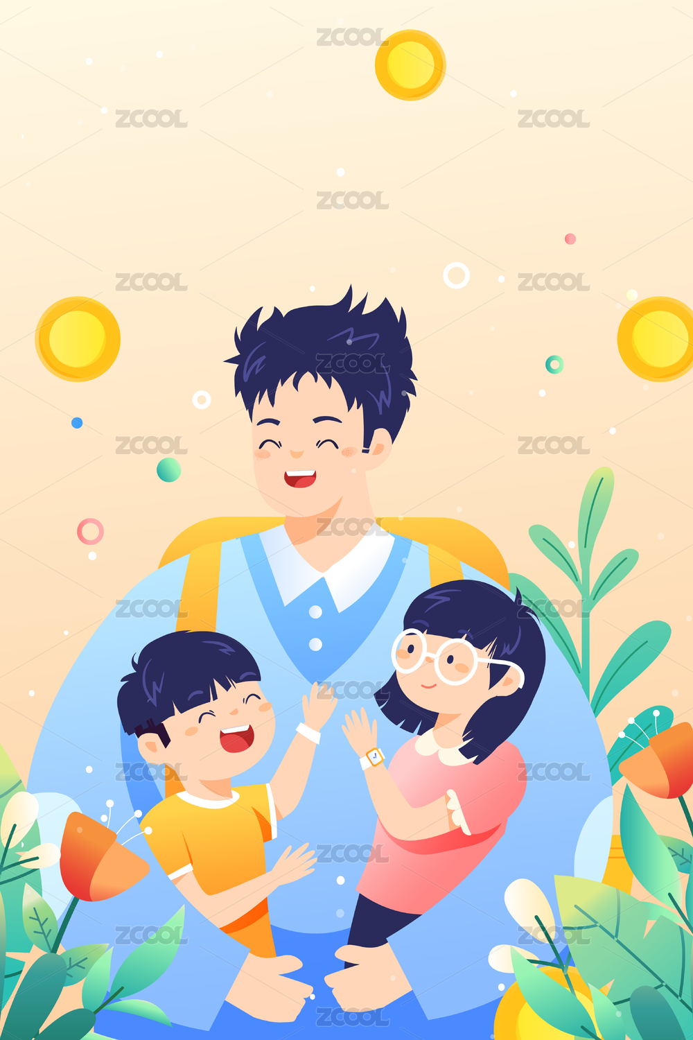 卡通儿童节父亲节亲子互动玩乐爸爸父爱插画