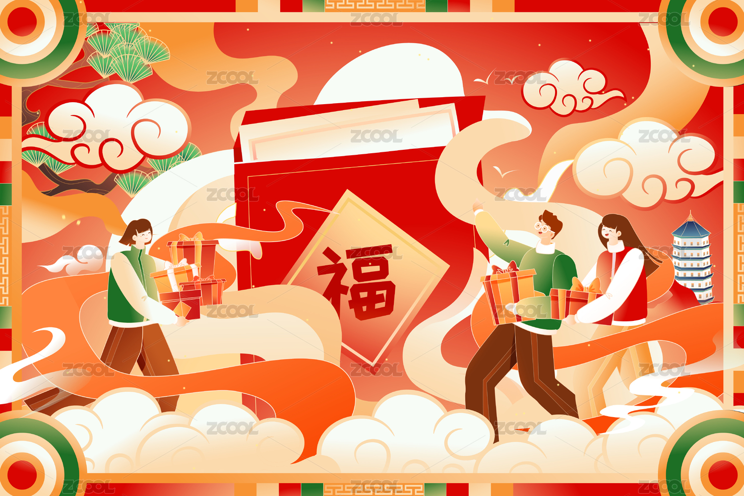 矢量,卡通,渐变,扁平,插画,插图,背景,元素,中国风,传统