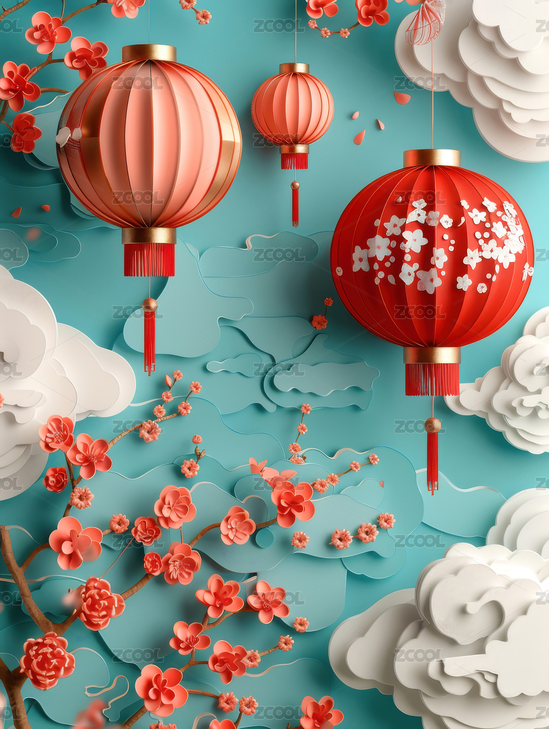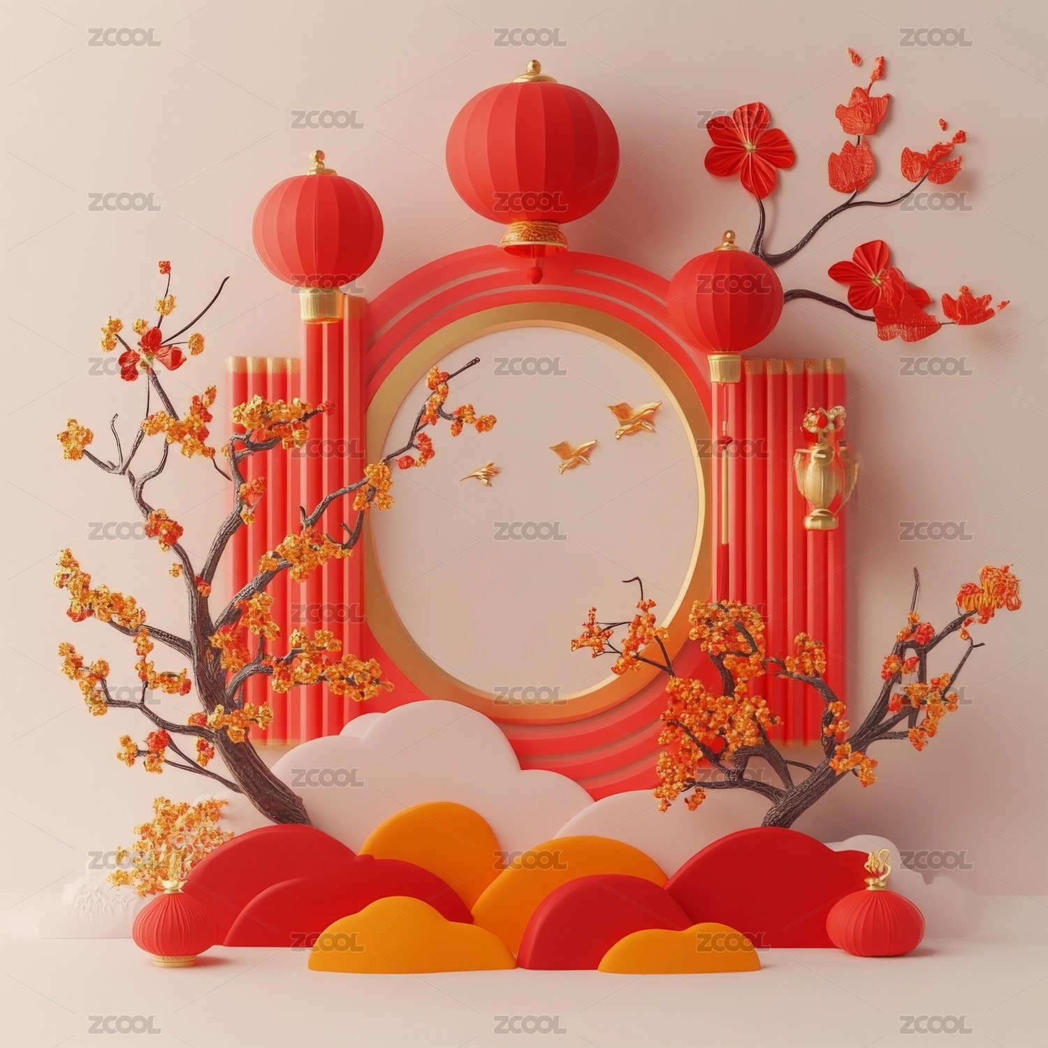 中式3D春节饰品背景