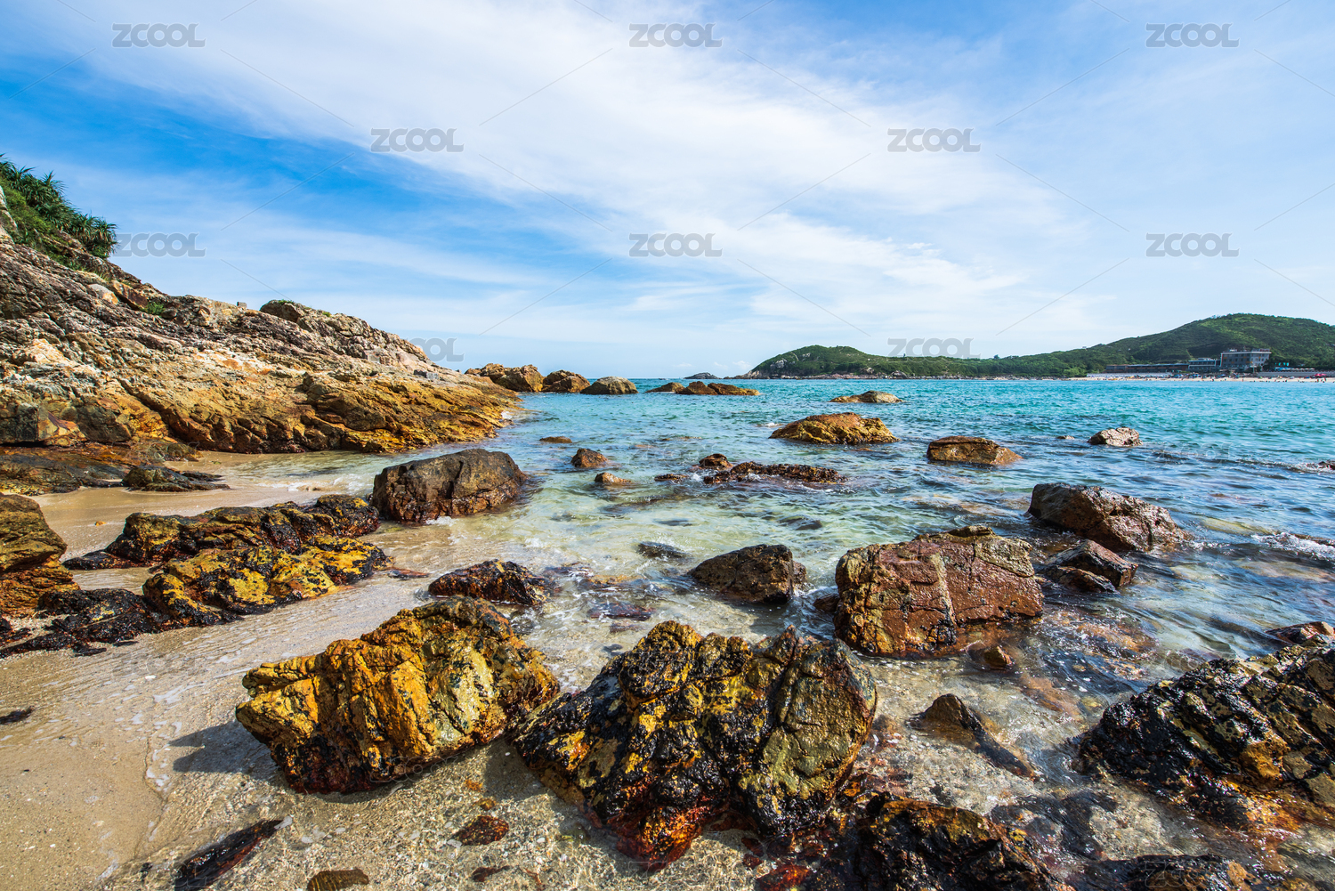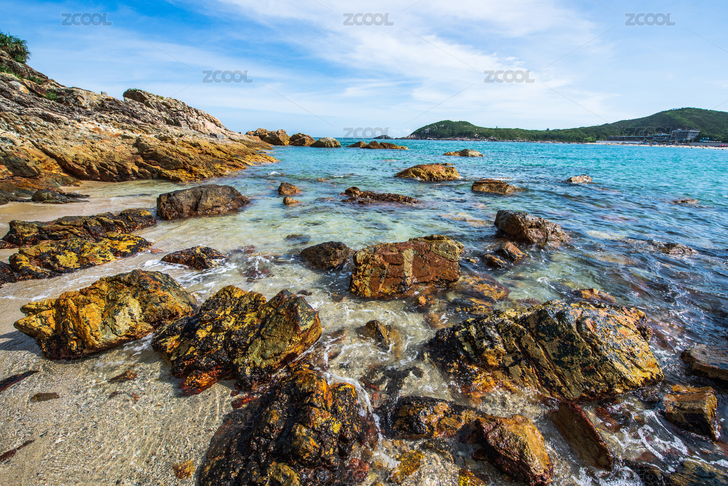 晴天的中国广东阳江海陵岛海边的礁石和海岛