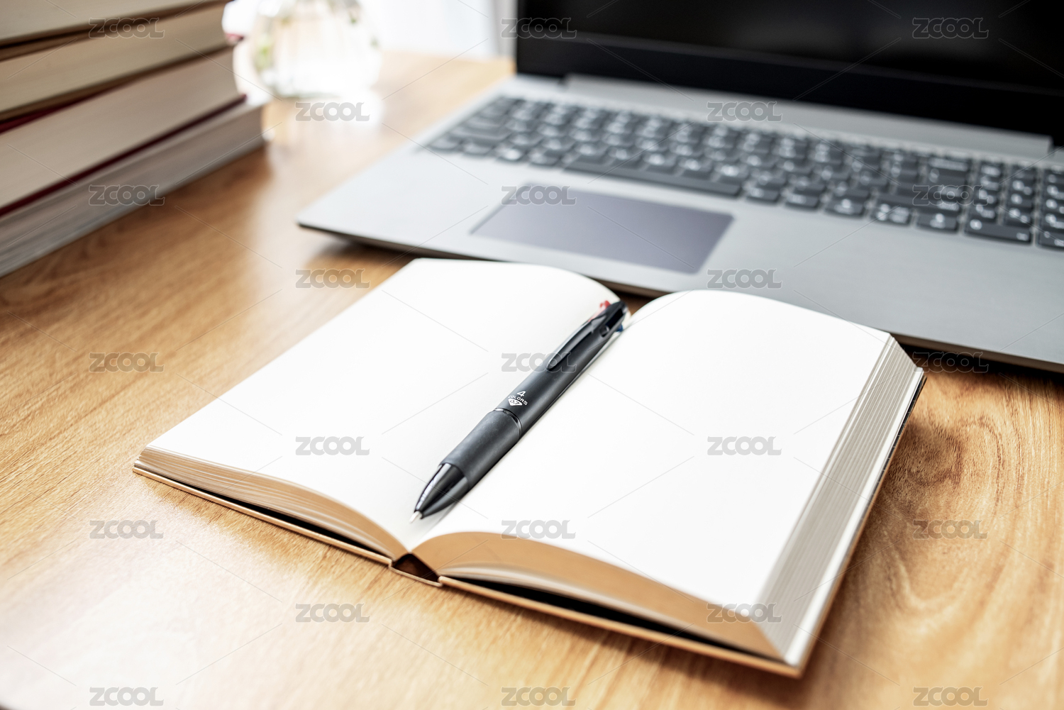 笔记本电脑和翻开的本子