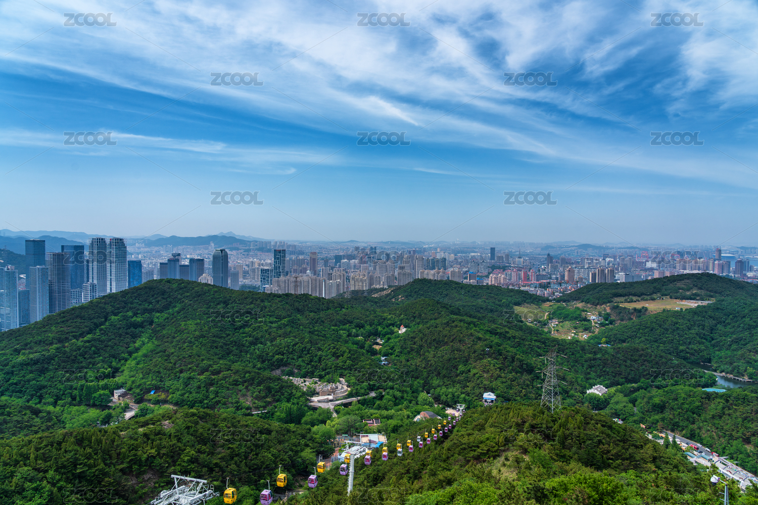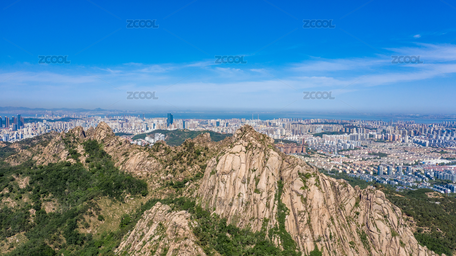 航拍山东烟台沿海海岸线建筑群城市自然风光