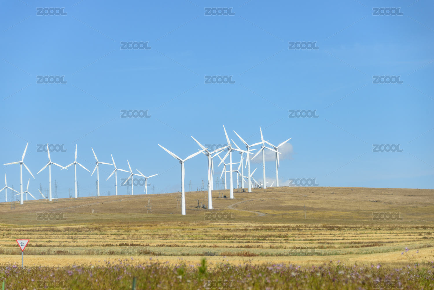 夏季的草原和风电厂