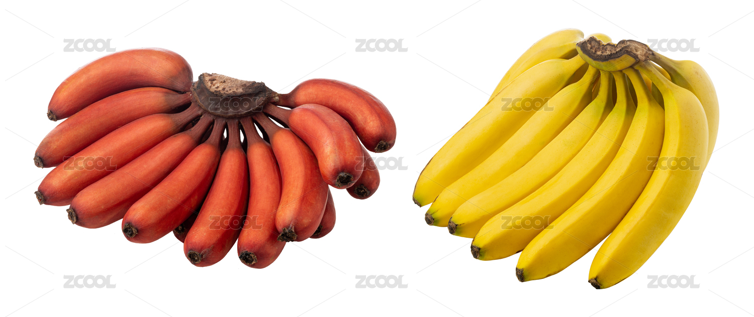 新鲜成熟的红蕉和黄色香蕉