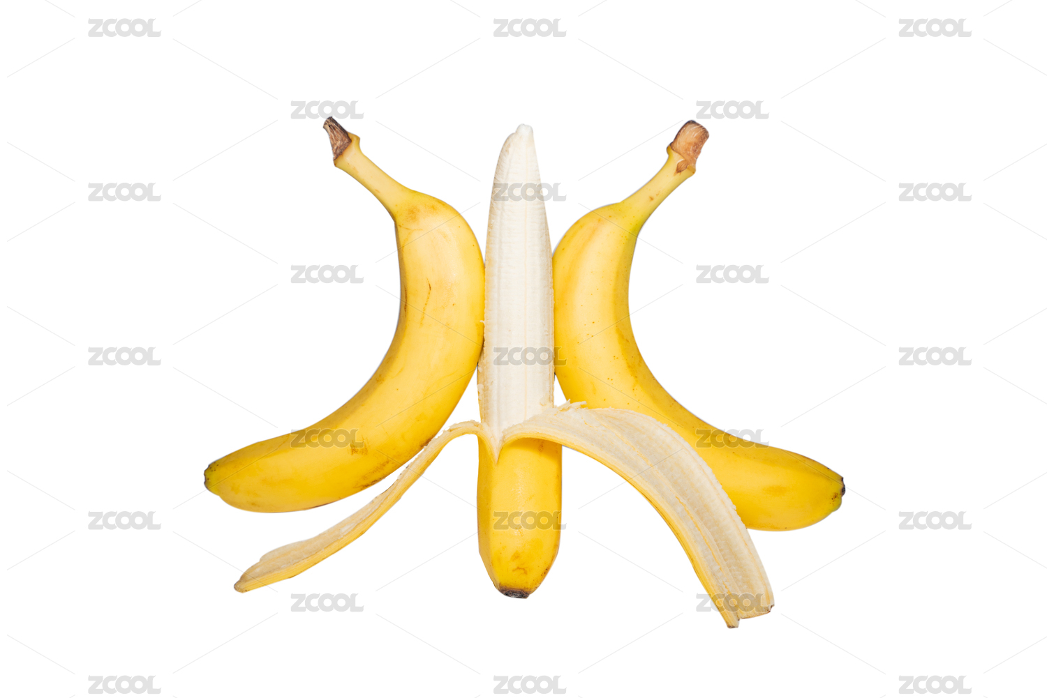 白色背景下拨开剥开皮的新鲜精选香蕉创意灵感摆拍