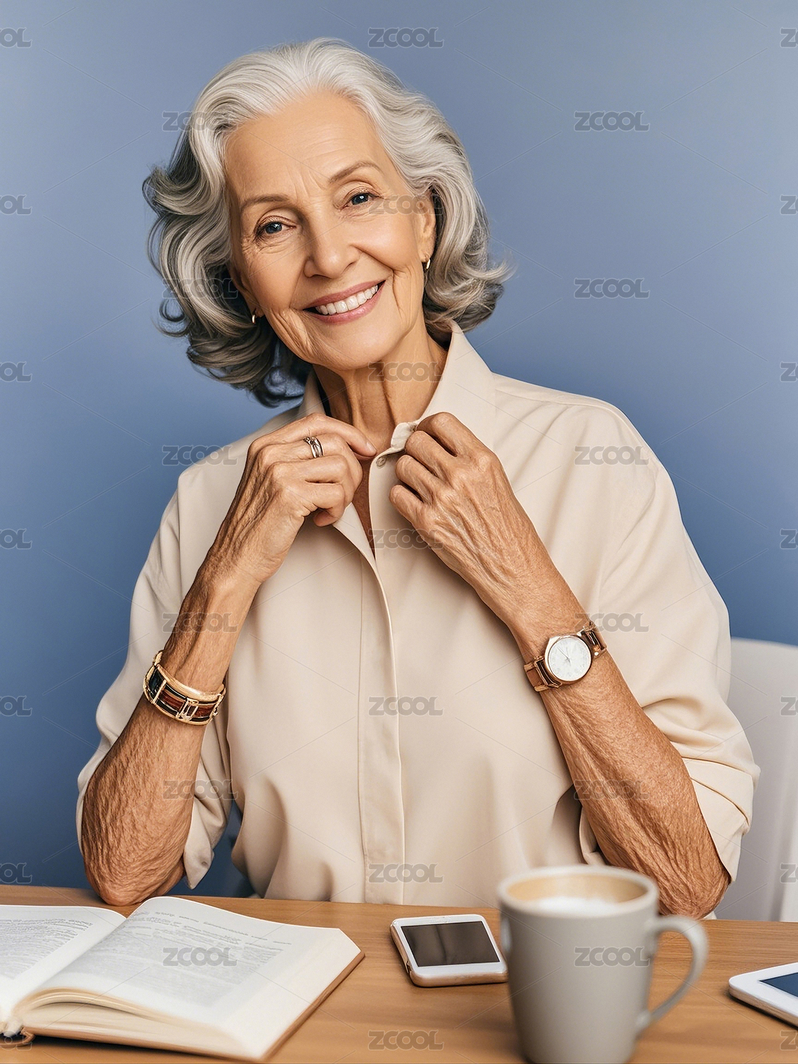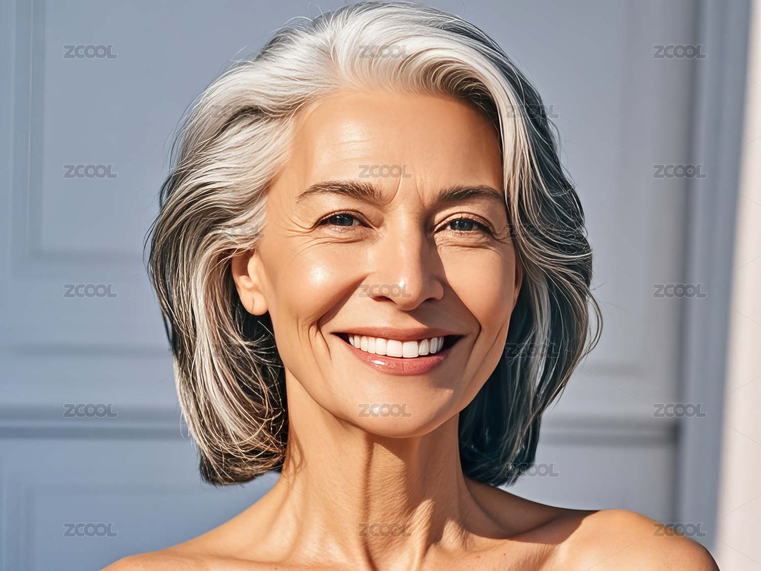DXCZ202406,女性,女人,时尚,欧美,肖像,笑脸,银色头发,白色头发,银发