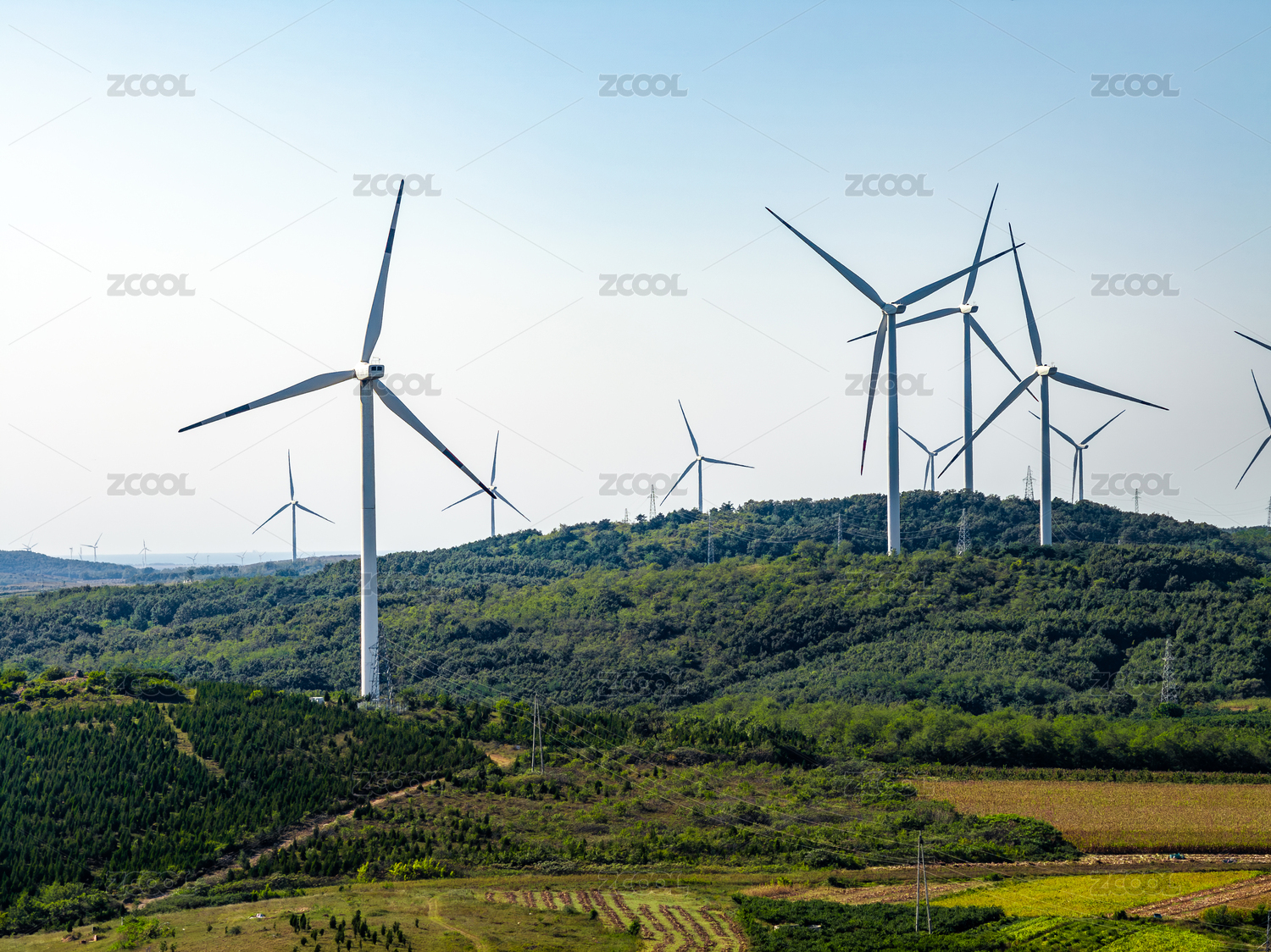 蓝天下的福建平潭岛长江澳风力发电田景观