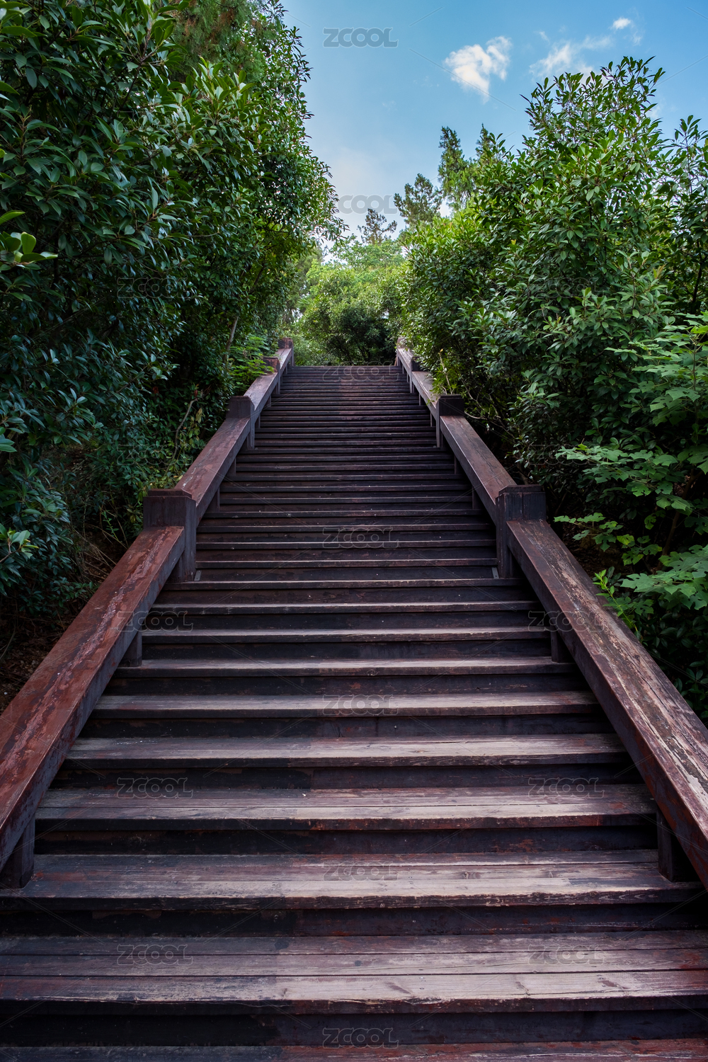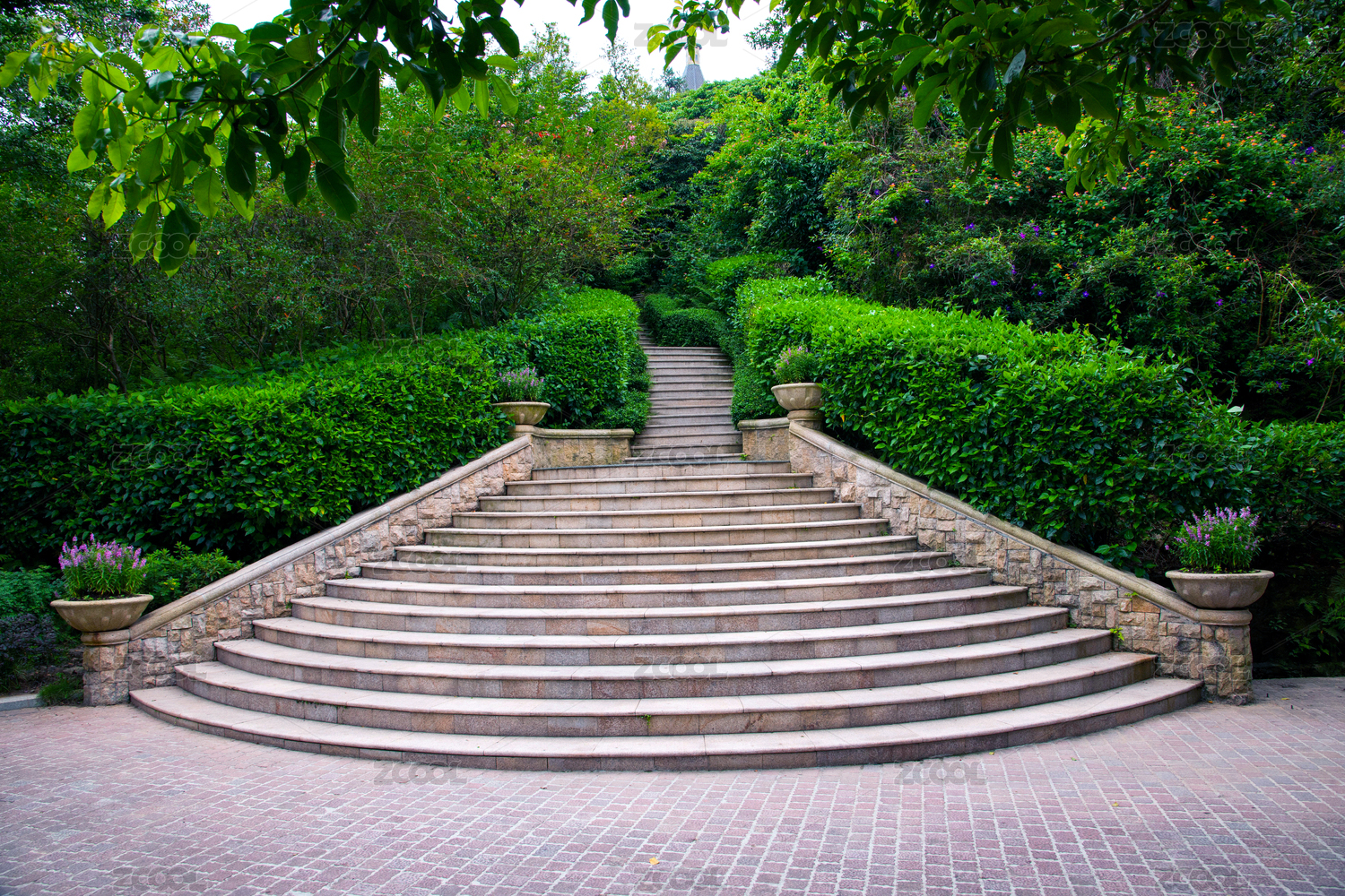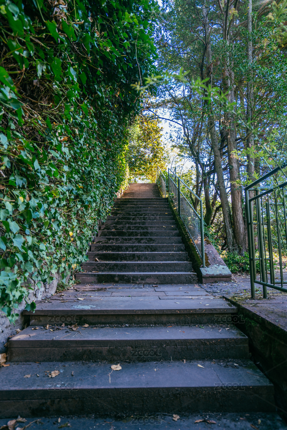 福州屏山公园里上山的台阶和树木,曲径通幽