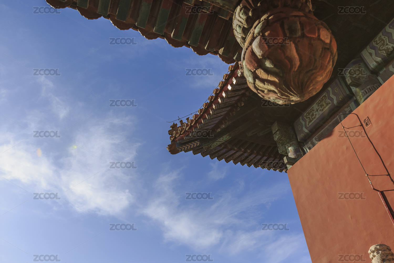 蓝天下的天坛皇穹宇宫殿脊兽特写